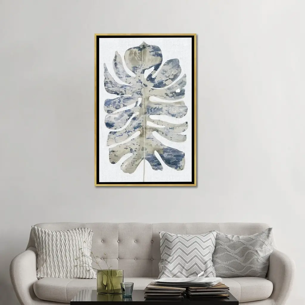 Icanvas "Large Indigo Leaf I" By Eva Watts Framed - Black - 48x32