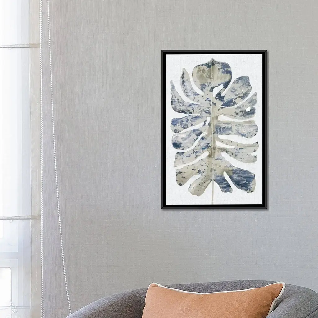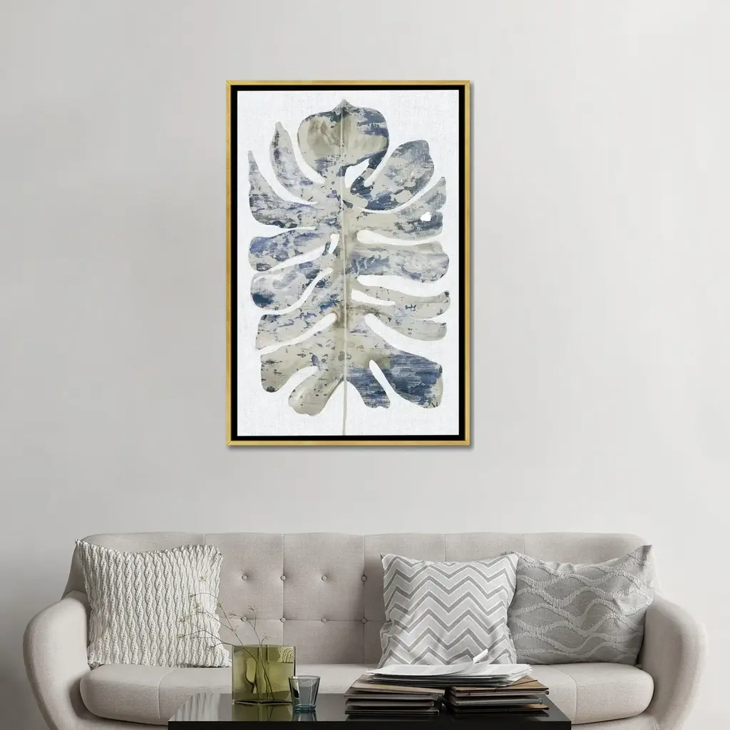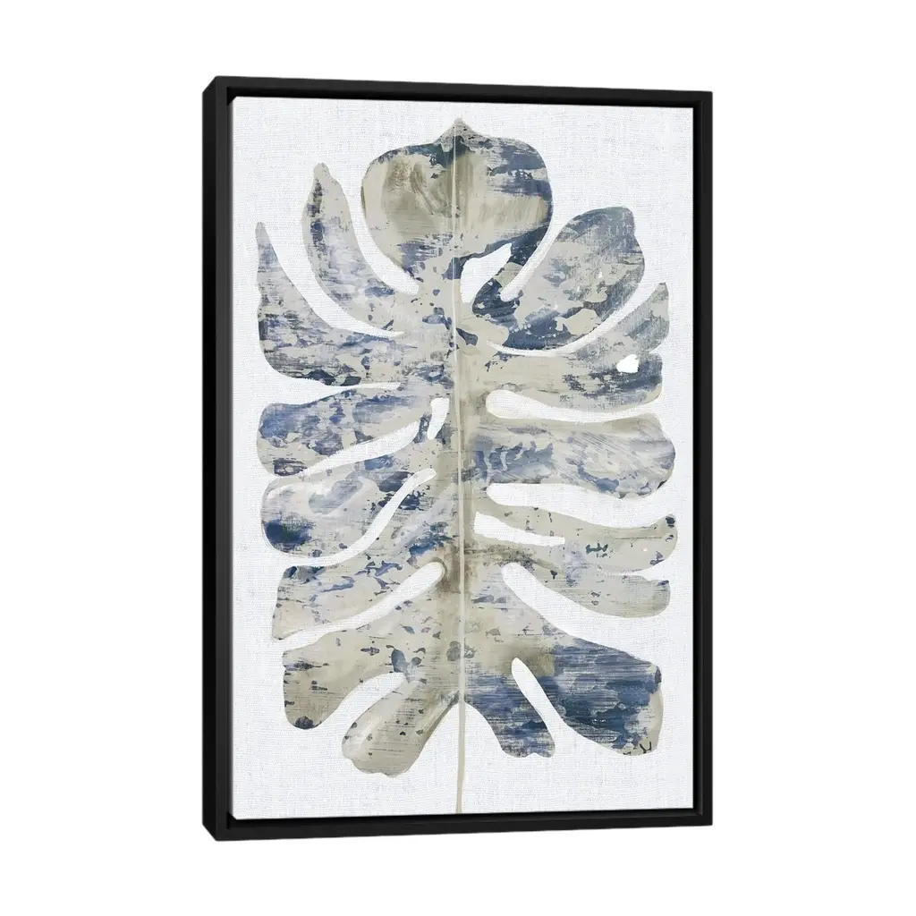 Icanvas "Large Indigo Leaf I" By Eva Watts Framed - White - 26x18