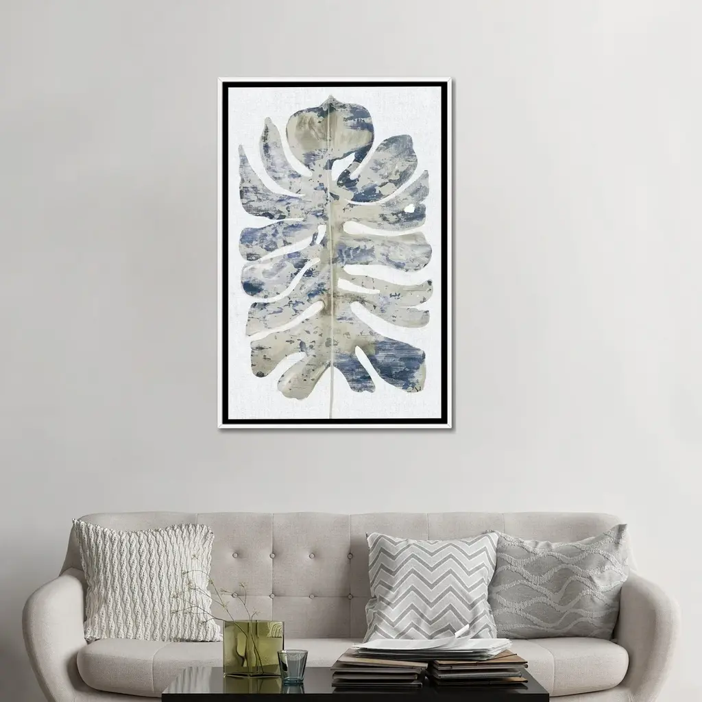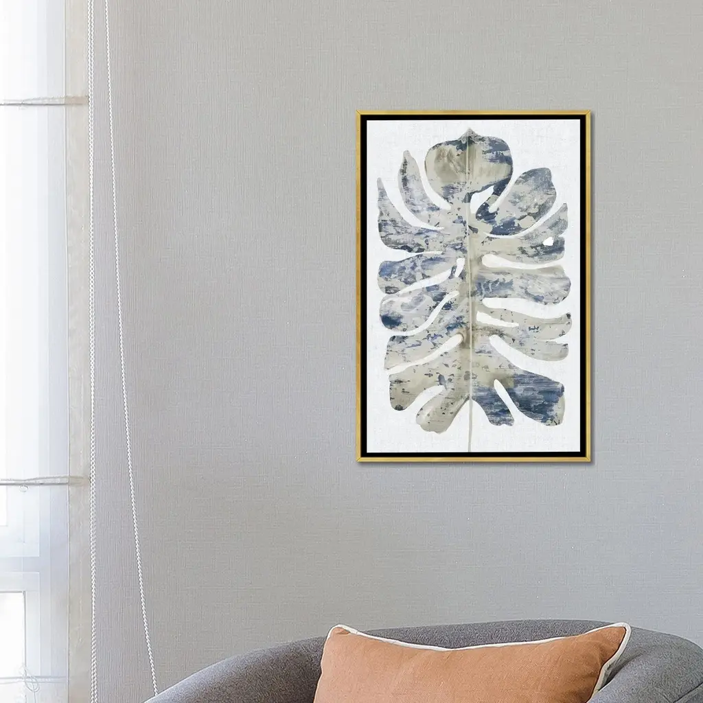Icanvas "Large Indigo Leaf I" By Eva Watts Framed - White - 40x26