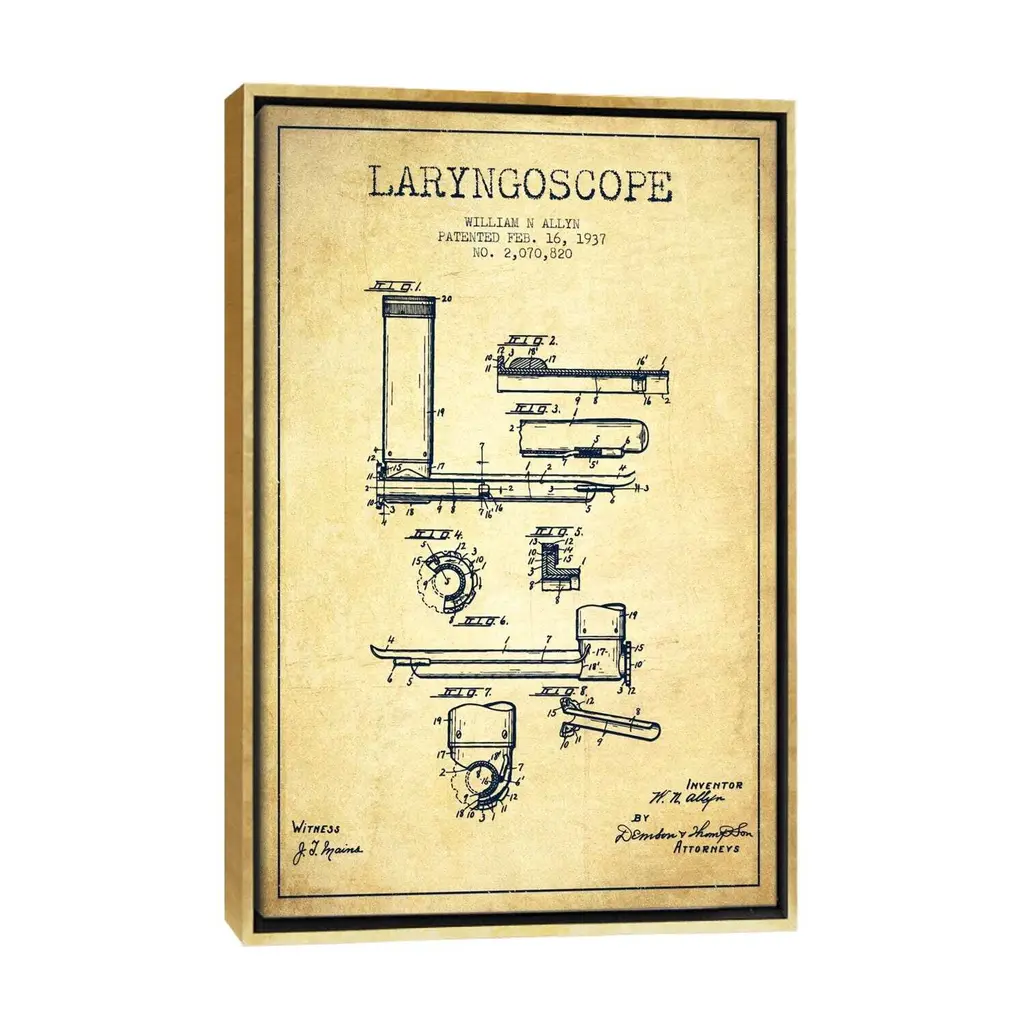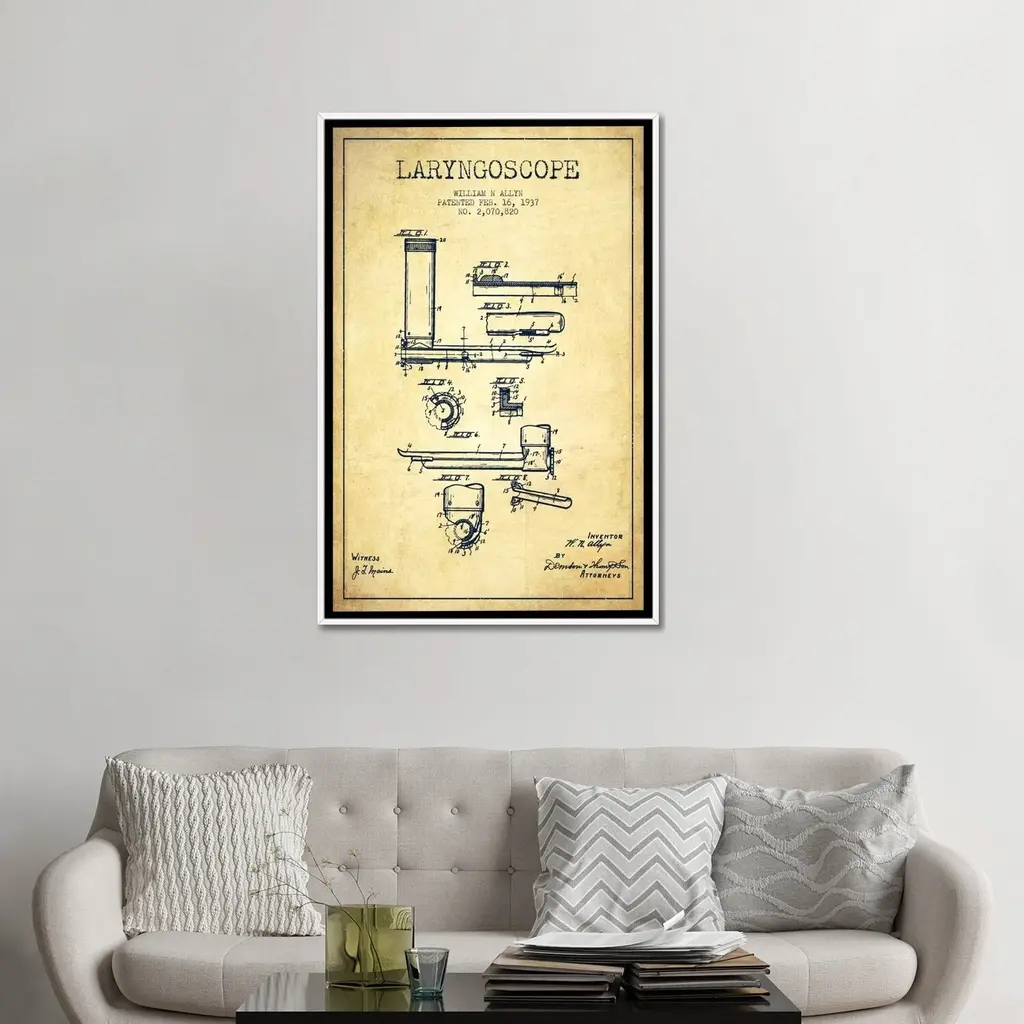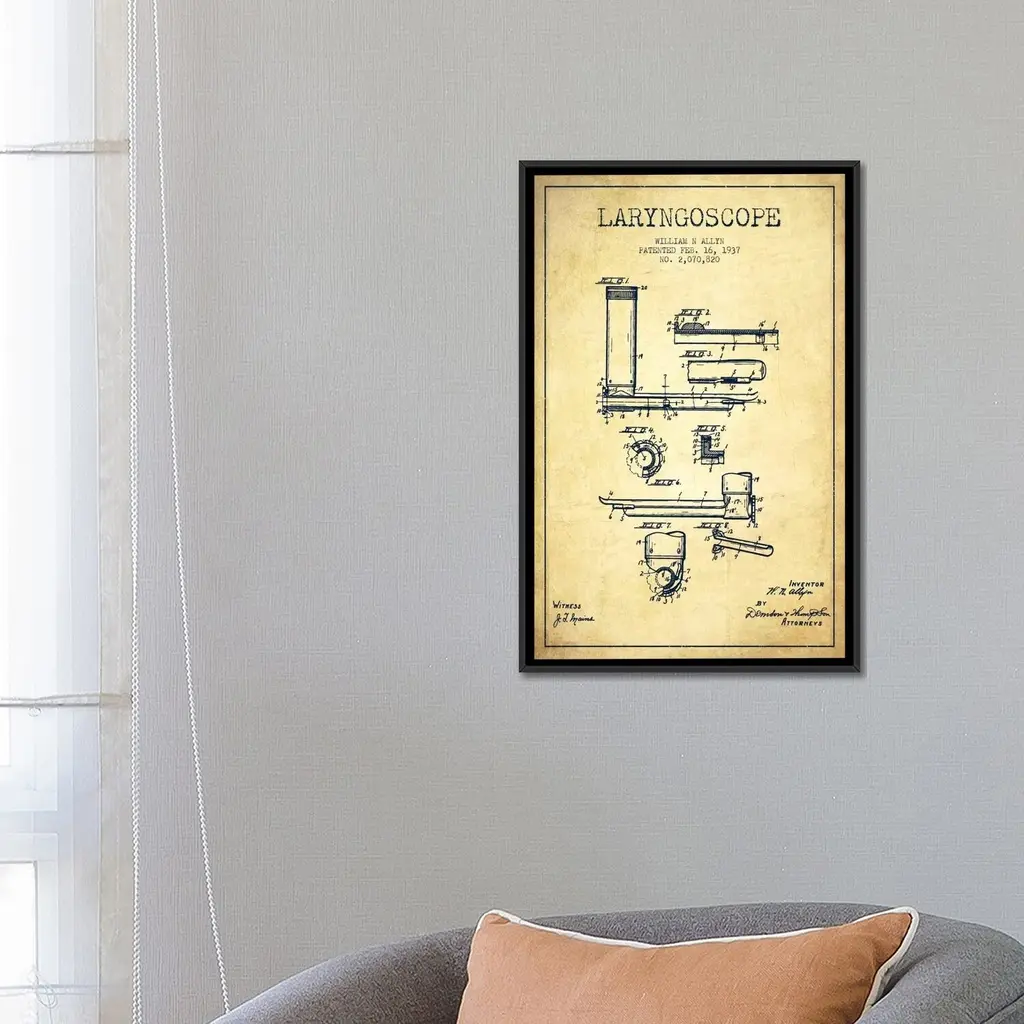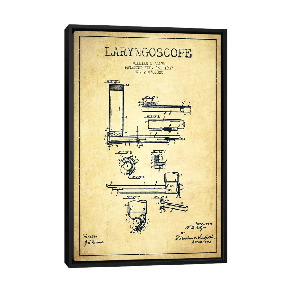 Icanvas "Laryngoscope Vintage Patent Blueprint" By Aged Pixel Framed - Black - 26x18