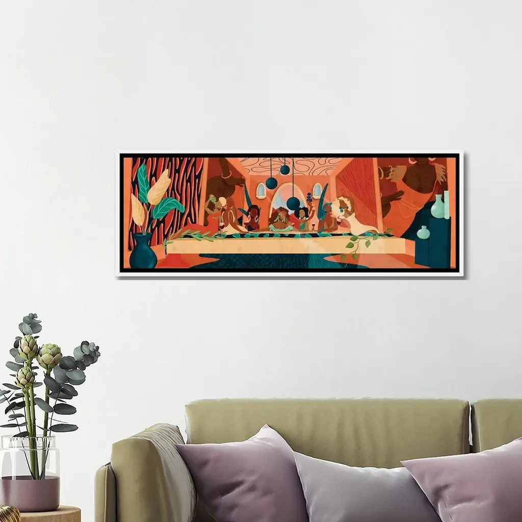 Icanvas "Last Supper" By Reyna Noriega Framed Canvas Print - 16x48 - White