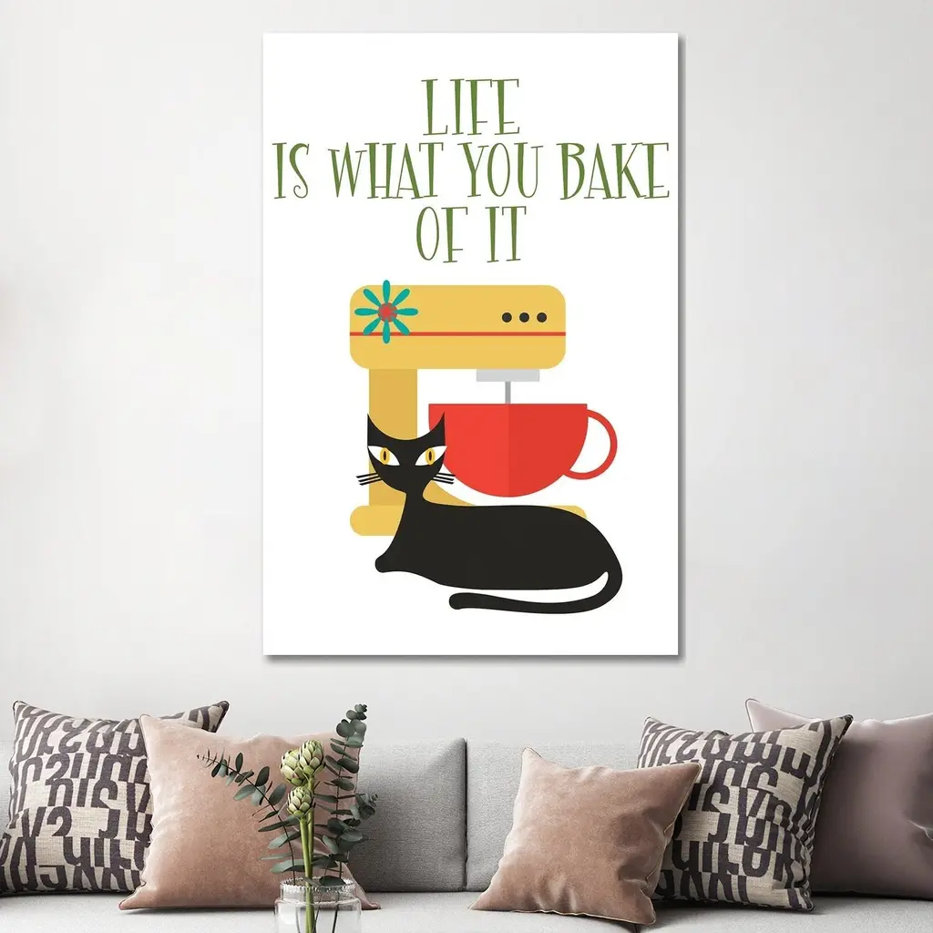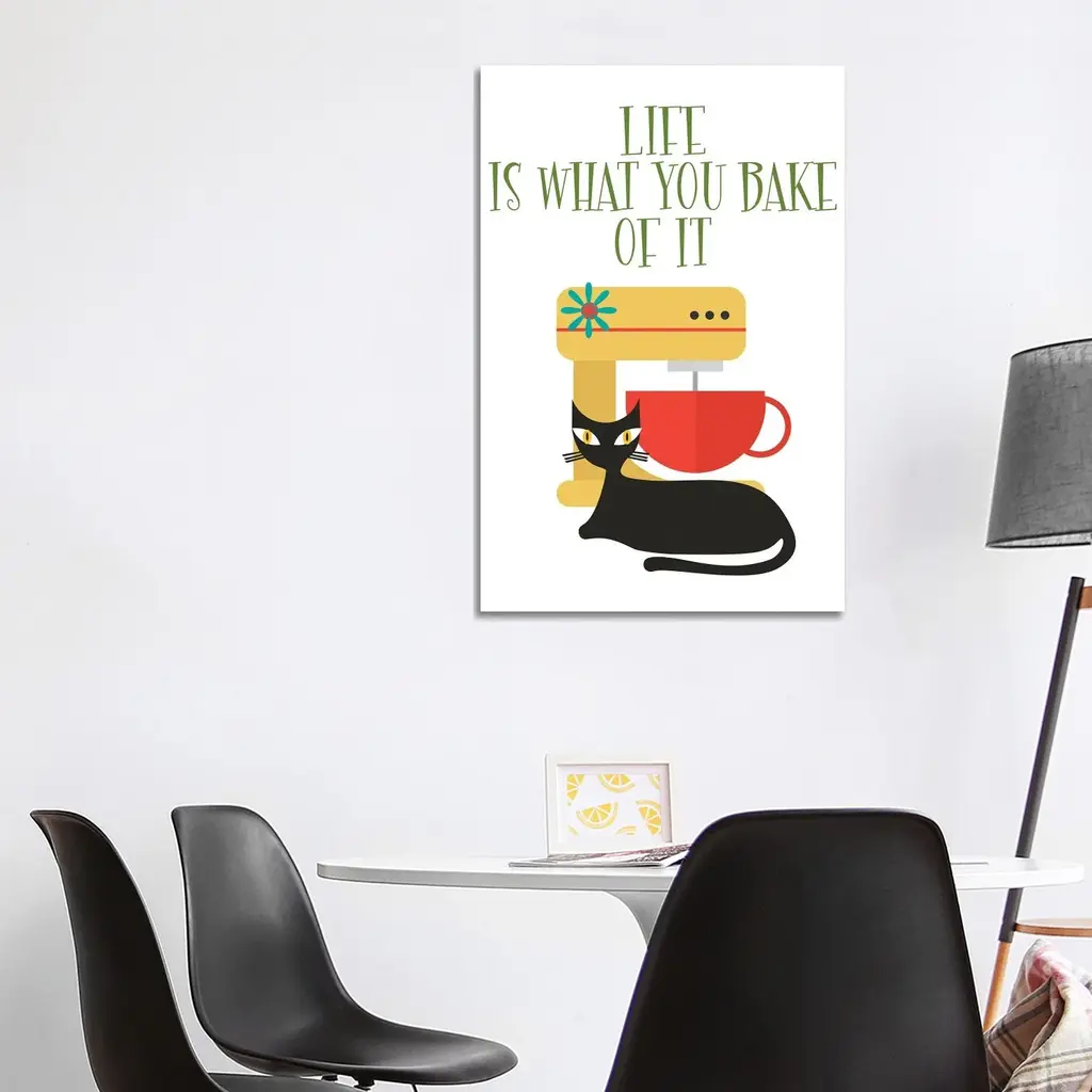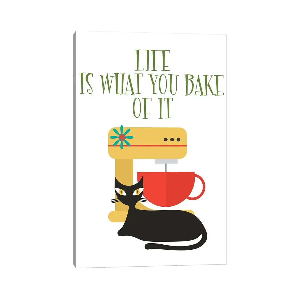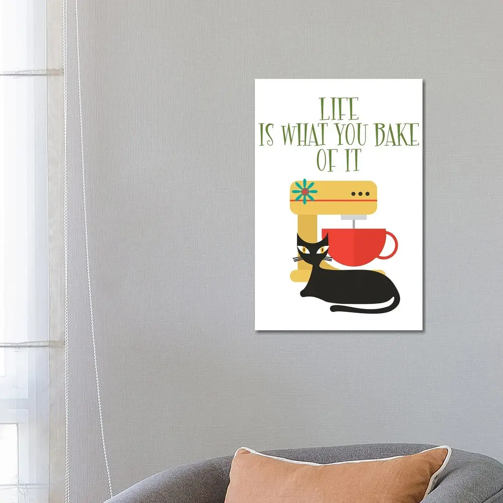 Icanvas "Life Is What You Bake Of It Mod Cat" By Jania Sharipzhanova Canvas Print - 12x8x0.75