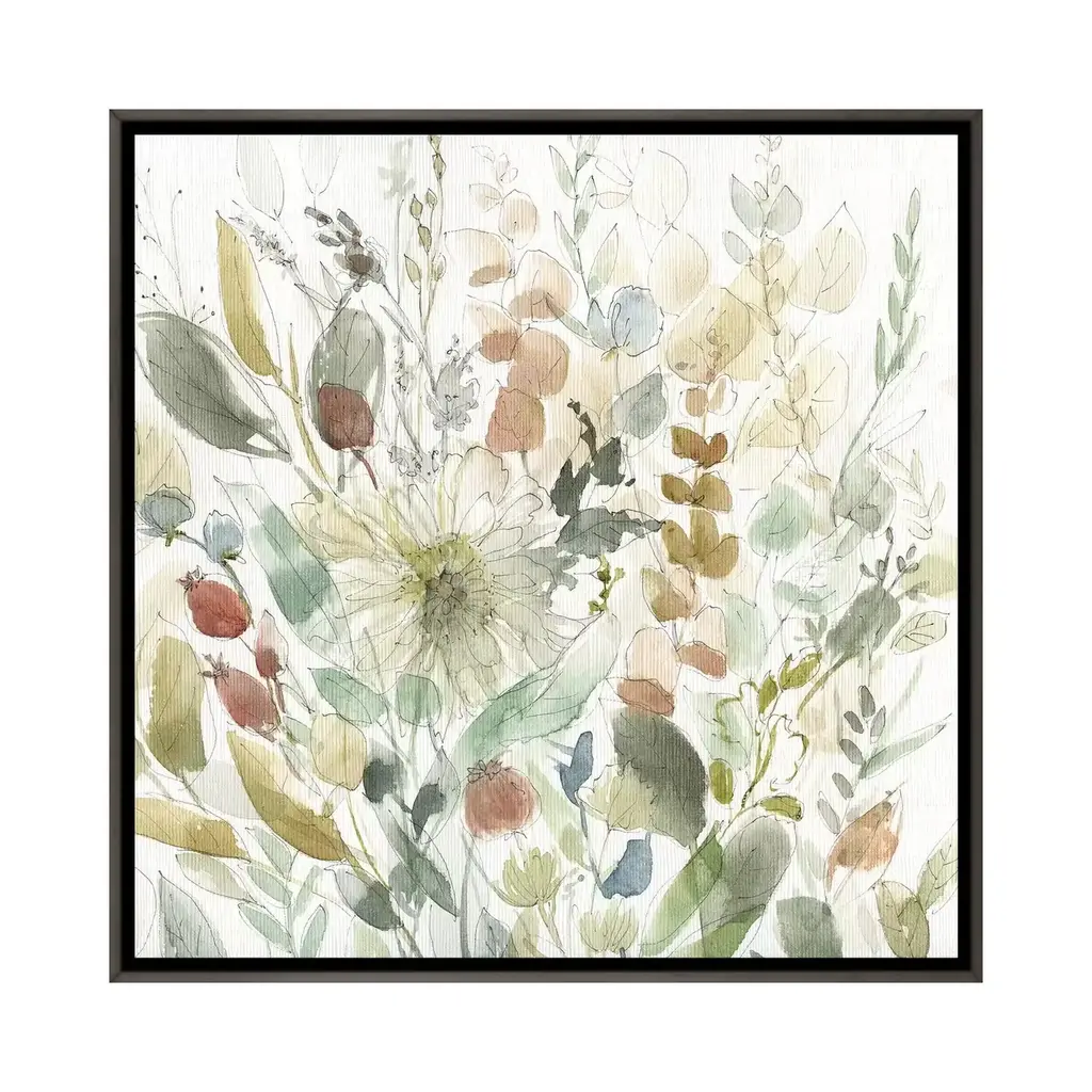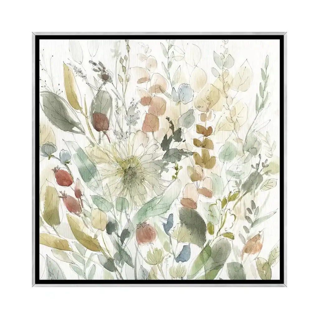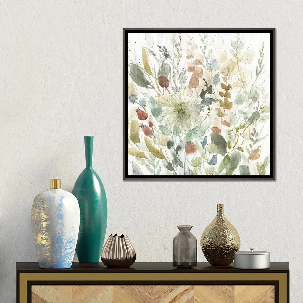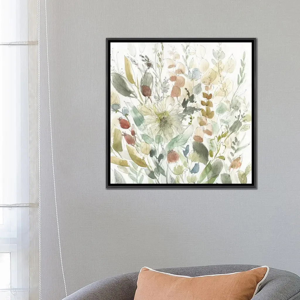 Icanvas "Linen Wildflower Garden" By Carol Robinson Framed - 12x12 - Ebony