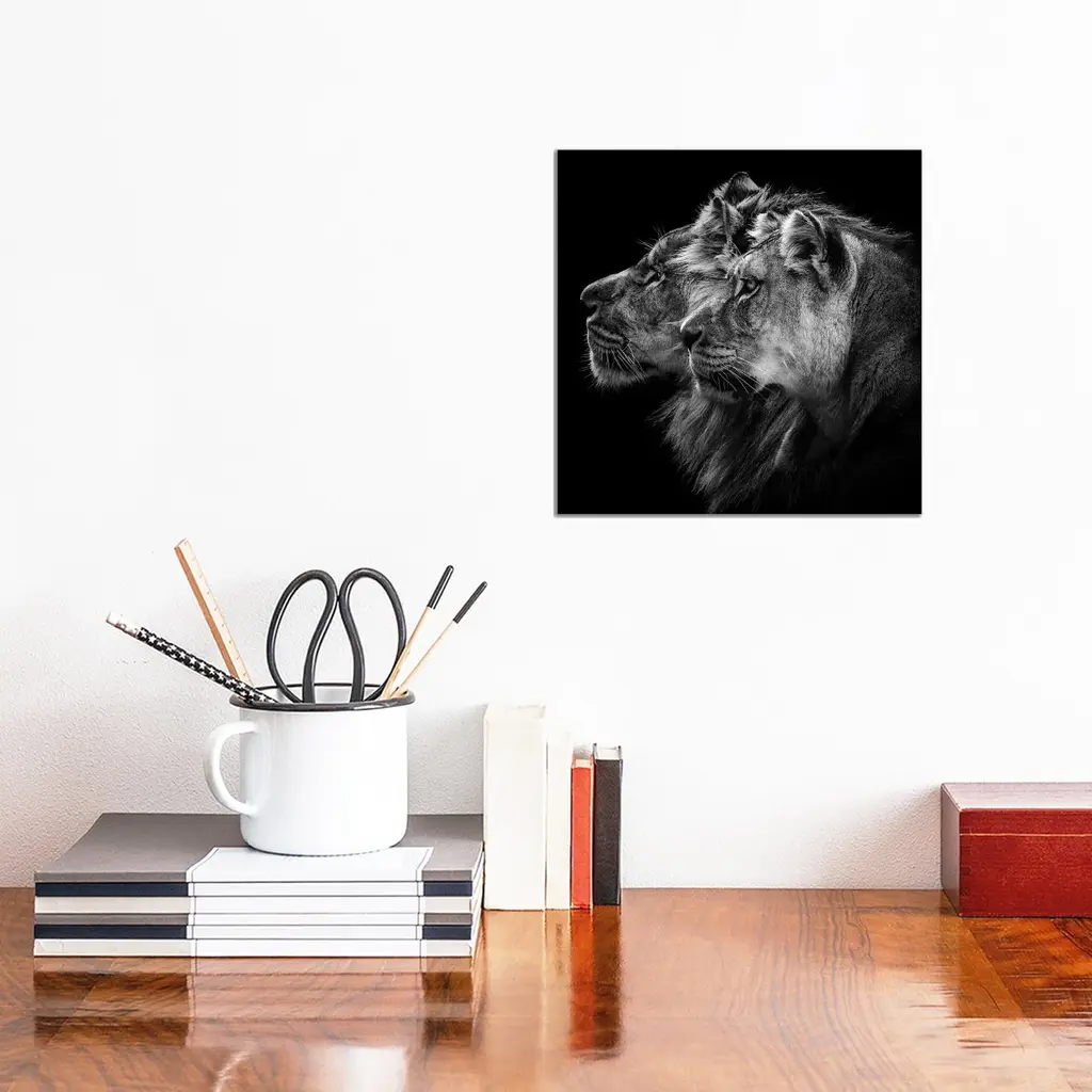 Icanvas "Lion And Lioness Portrait" By Laurent Lothare Dambreville Canvas Print - 12x12x0.75