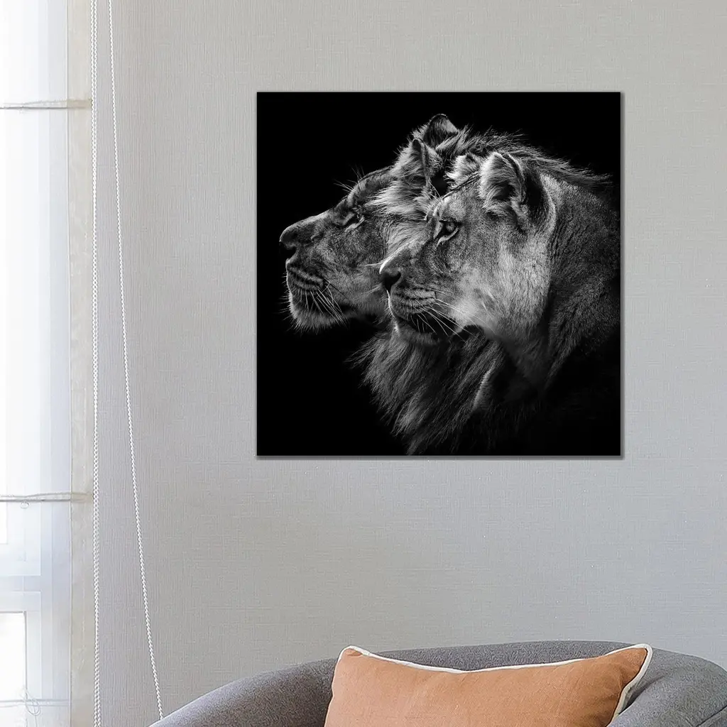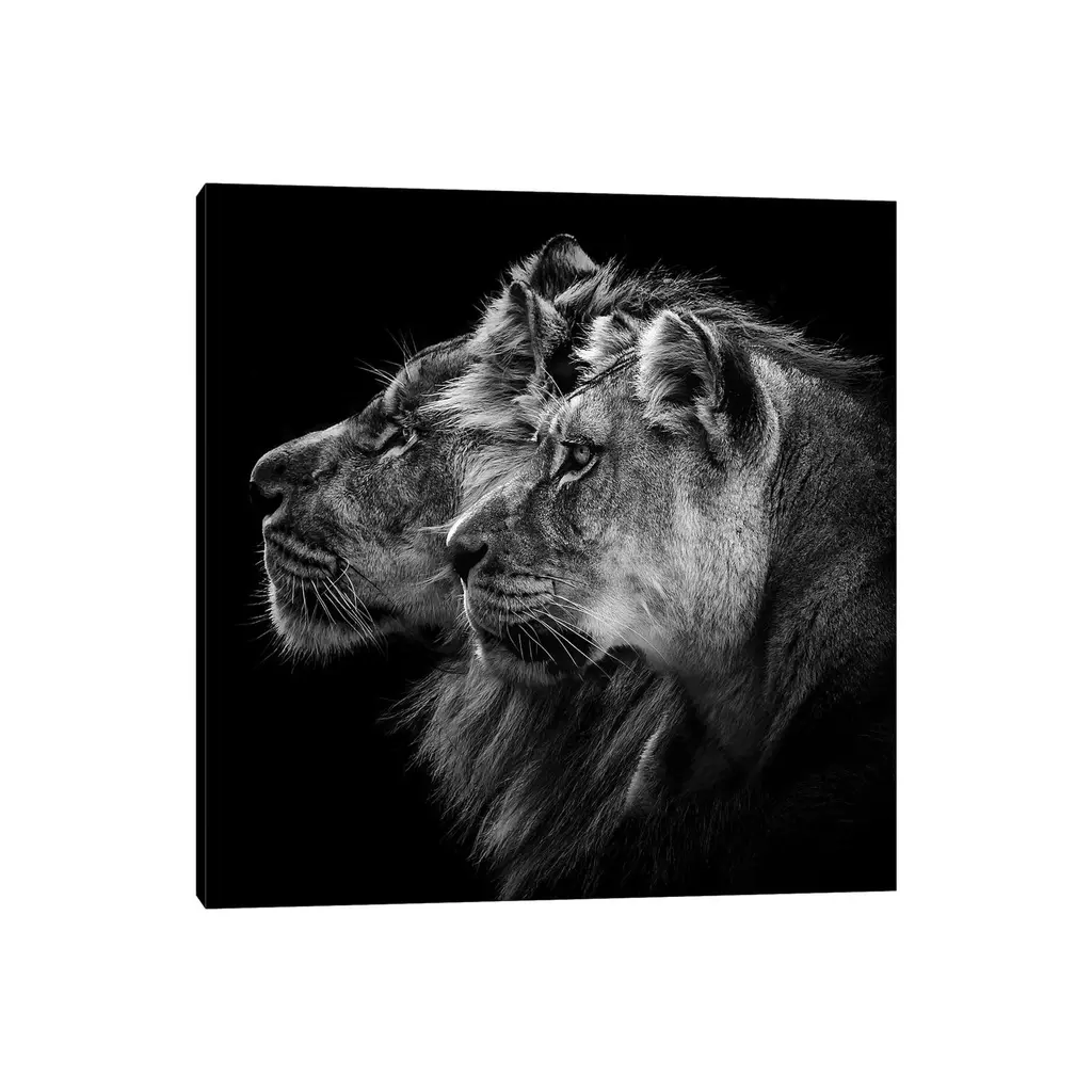 Icanvas "Lion And Lioness Portrait" By Laurent Lothare Dambreville Canvas Print - 18x18x1.5