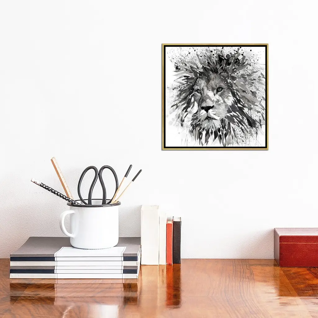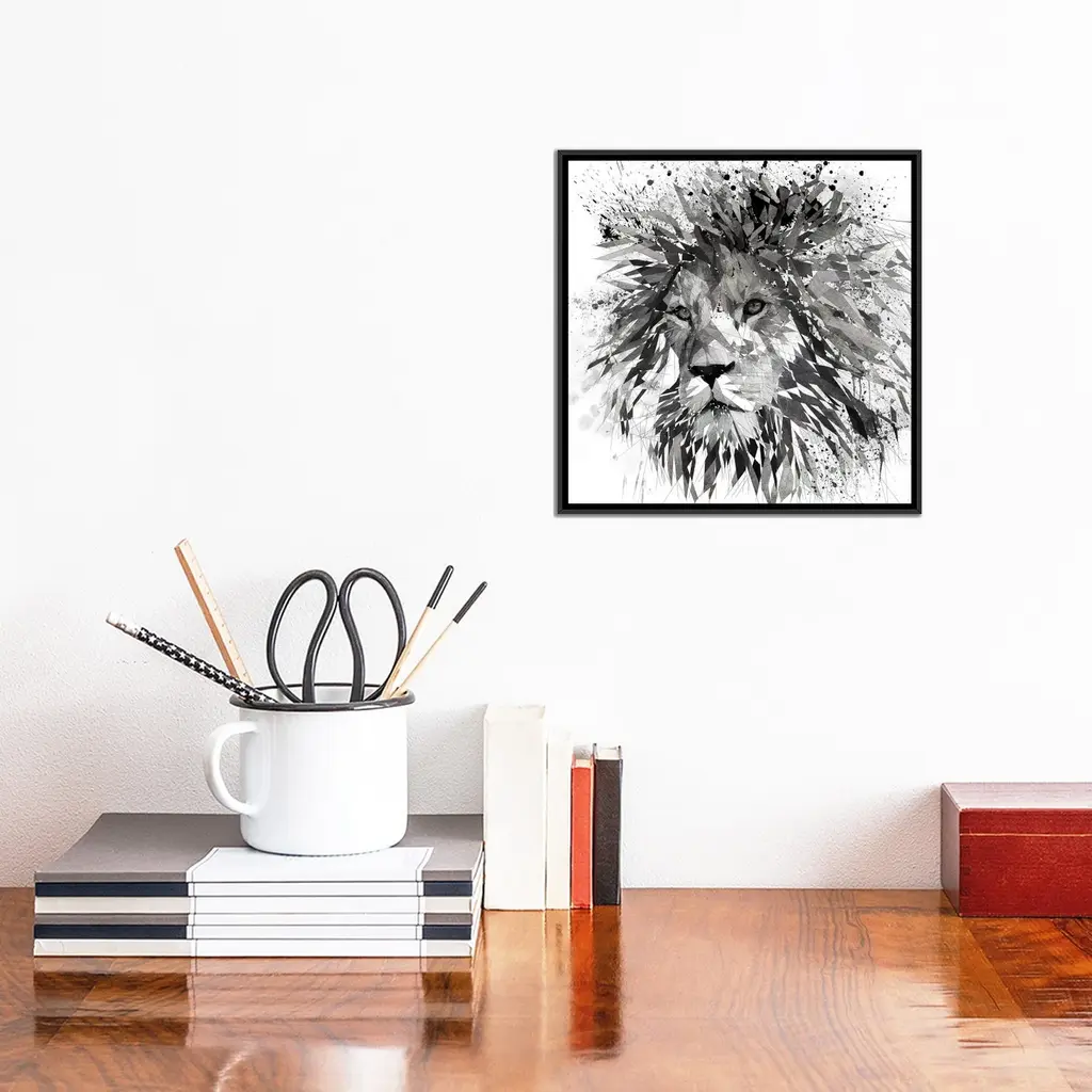 Icanvas "Lion Black And White" By Katia Skye Framed - Black - 12x12