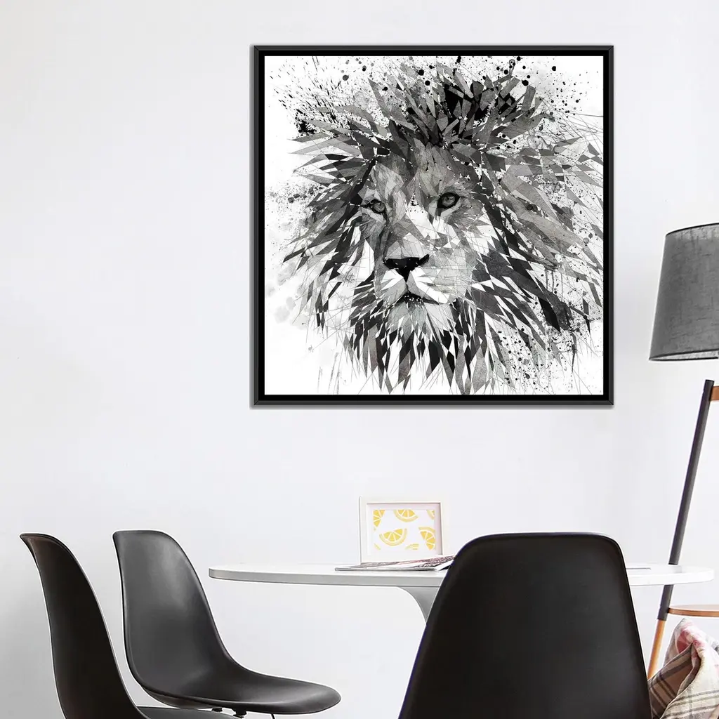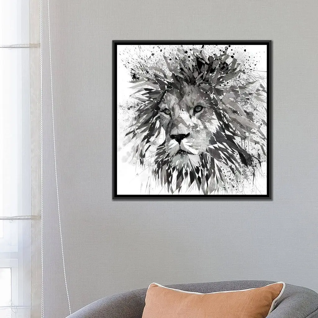 Icanvas "Lion Black And White" By Katia Skye Framed - Black - 18x18