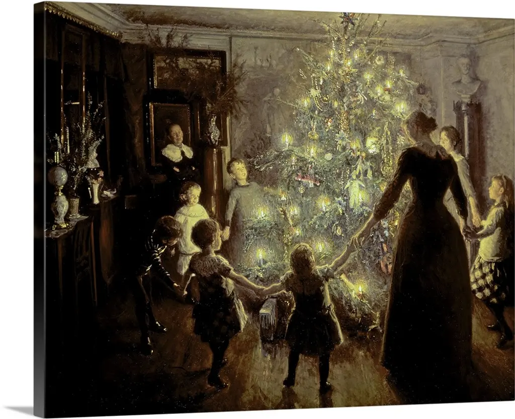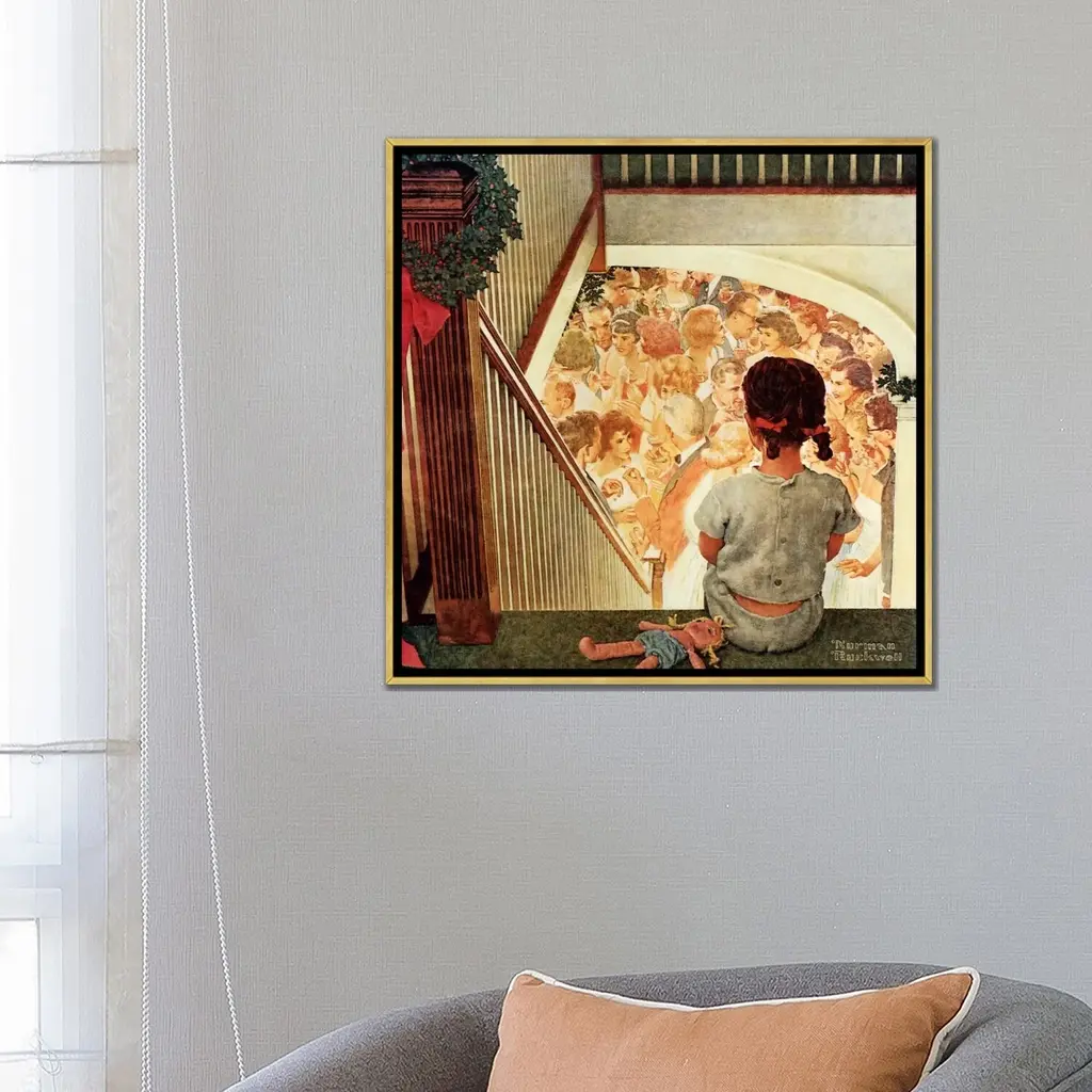 Icanvas "Little Girl Looking Downstairs At Christmas Party" By Norman Rockwell Framed Canvas Print - 26x26 - Gold