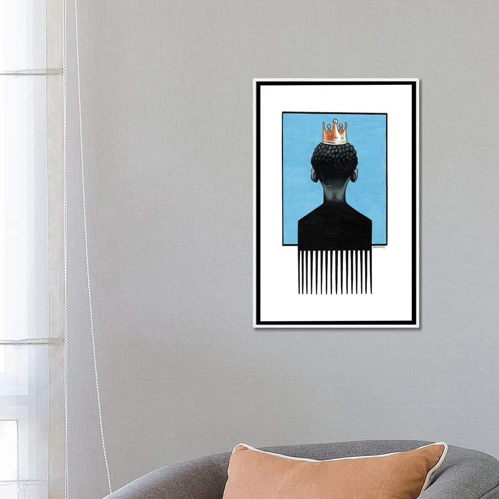 Icanvas "Little Prince Afropick" By Manasseh Johnson Framed Canvas Print - Gold - 26x18