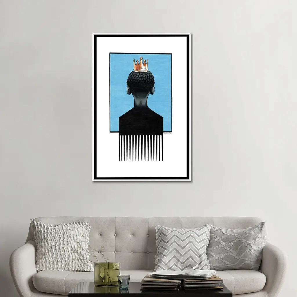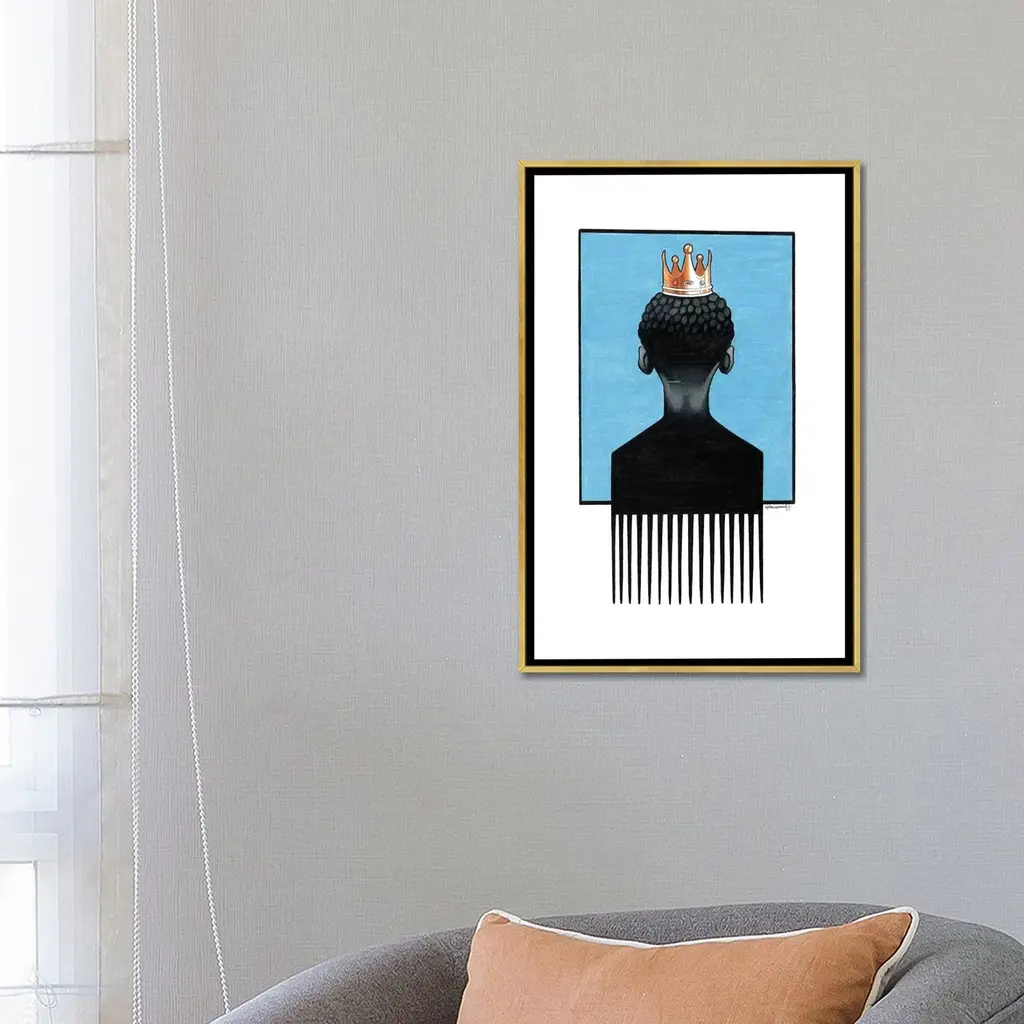 Icanvas "Little Prince Afropick" By Manasseh Johnson Framed Canvas Print - White - 40x26
