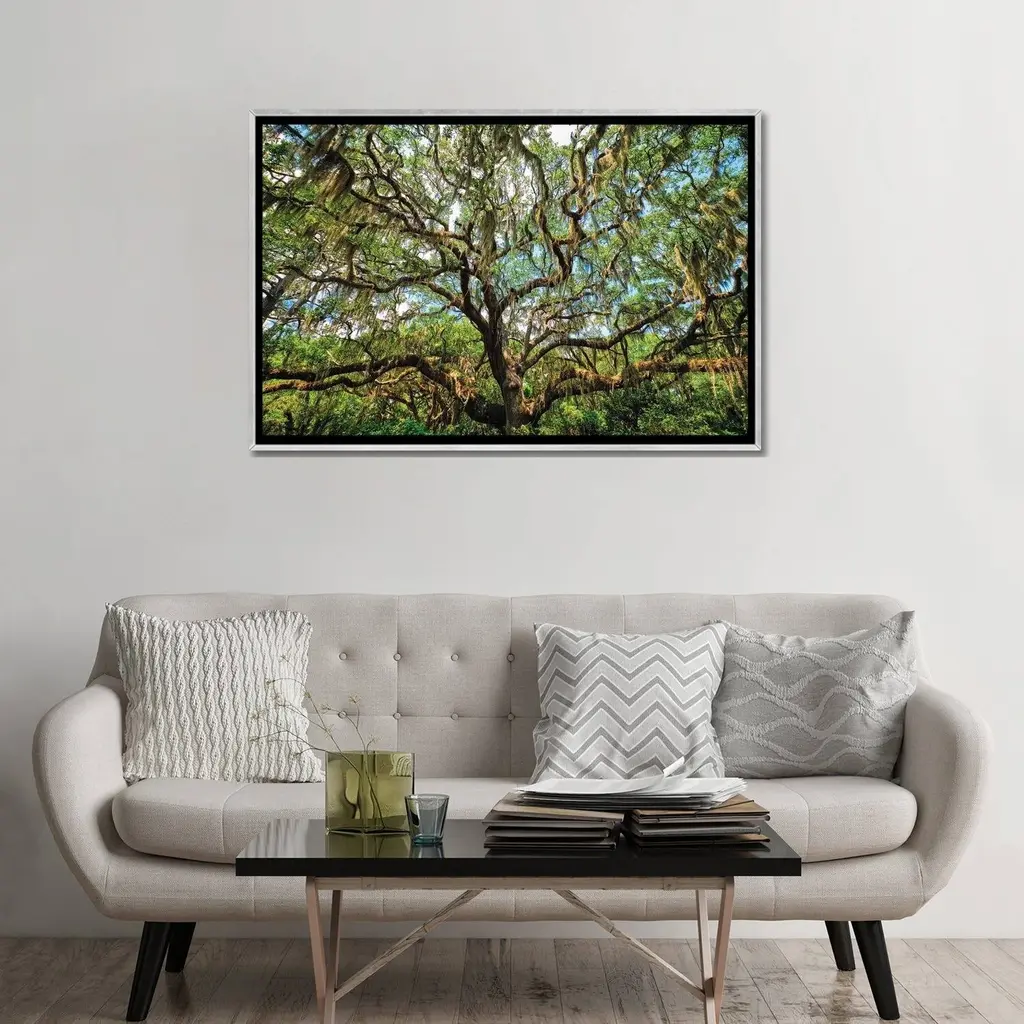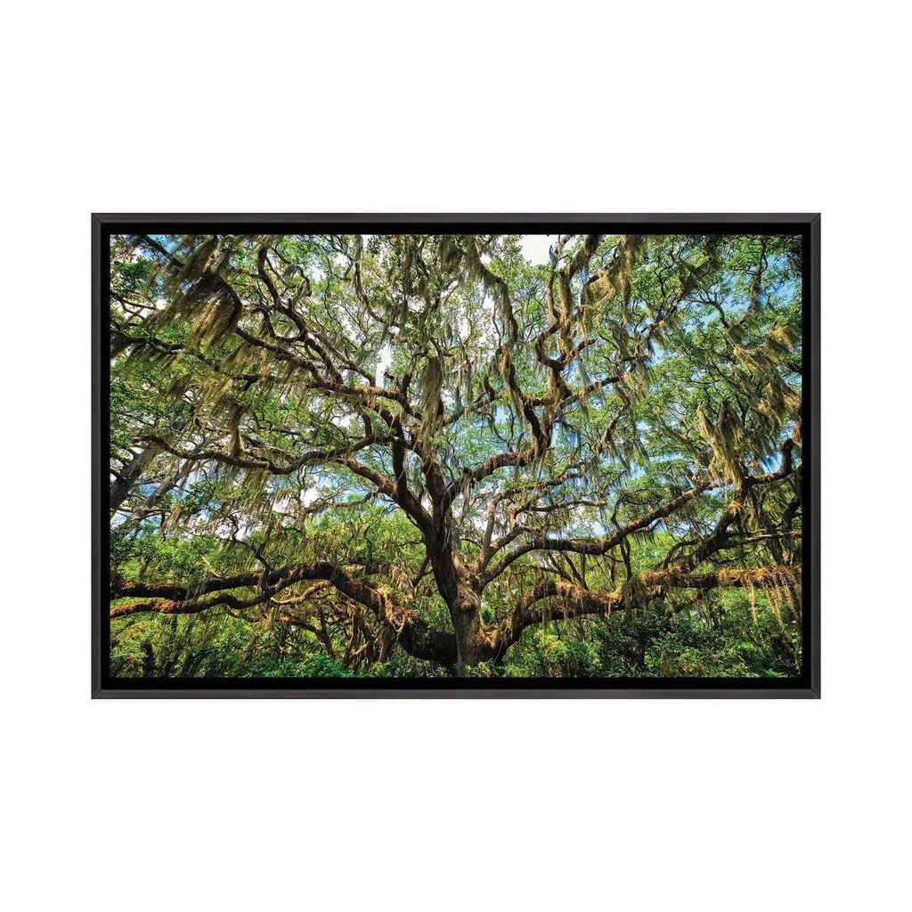 Icanvas "Live Oak Tree Canopy With Spanish Moss, Charleston, South Carolina" By George Oze Framed - Charcoal - 32x48