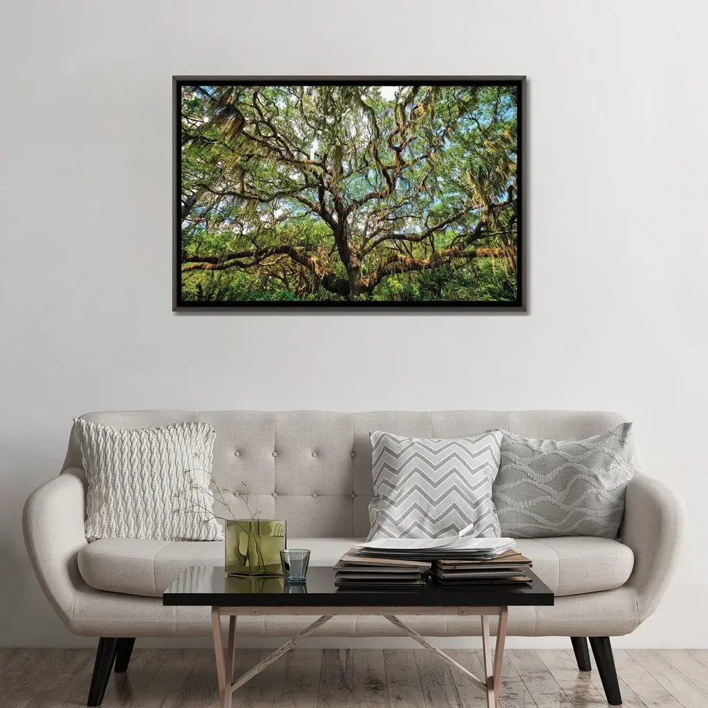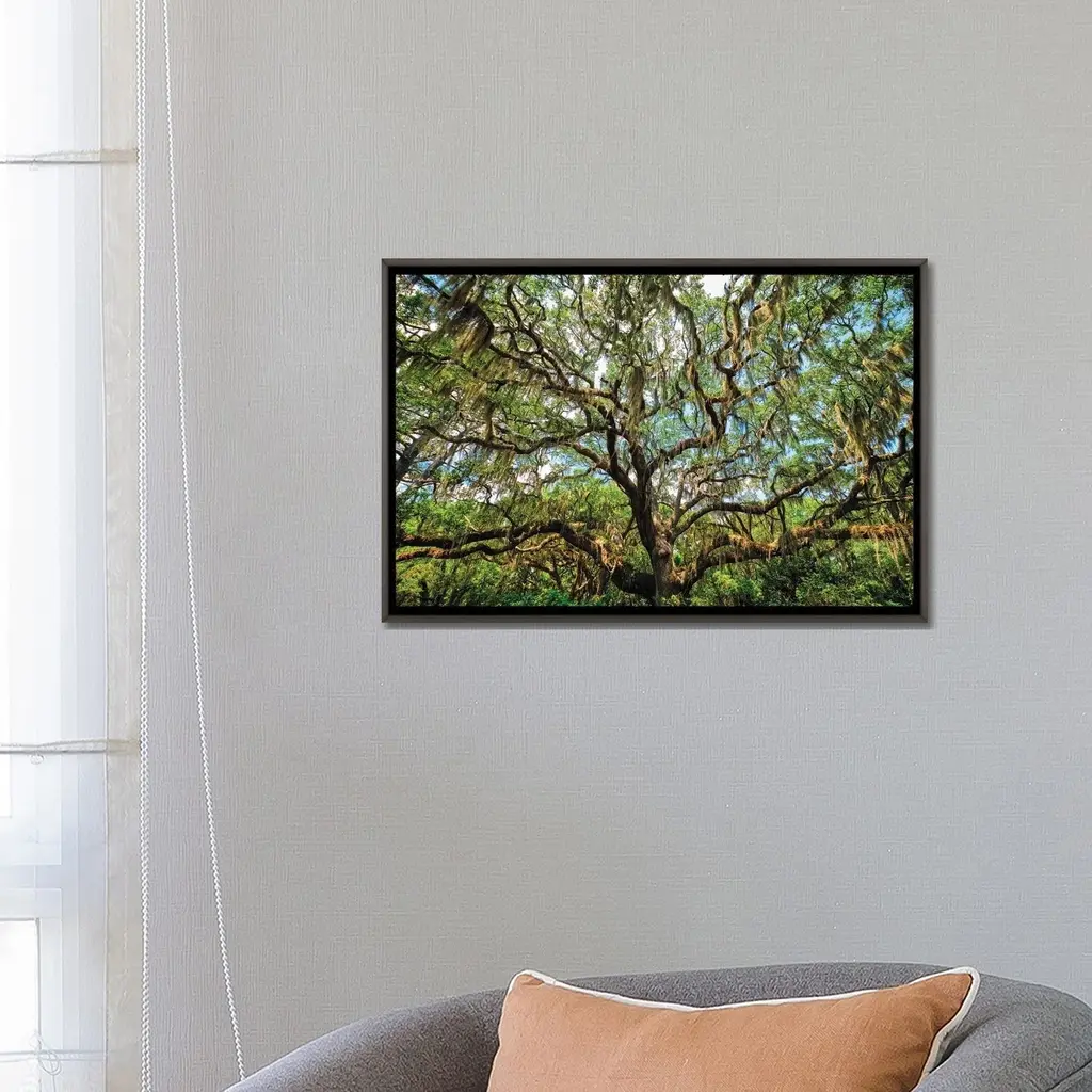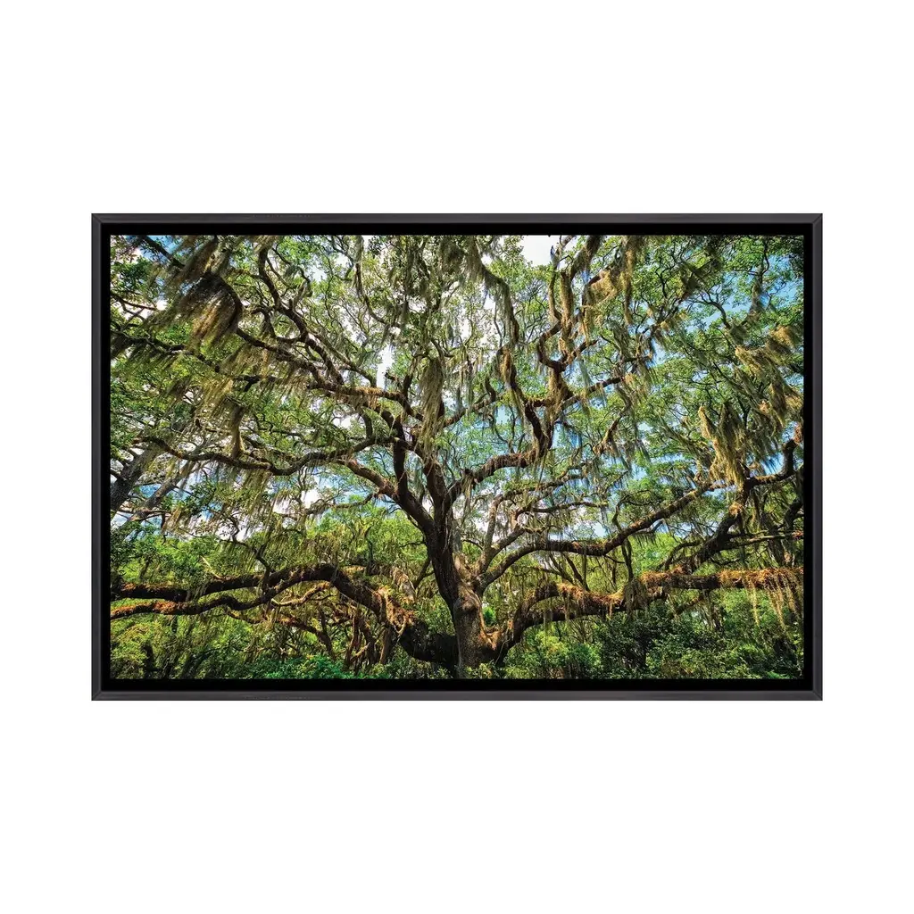Icanvas "Live Oak Tree Canopy With Spanish Moss, Charleston, South Carolina" By George Oze Framed - Ebony - 18x26