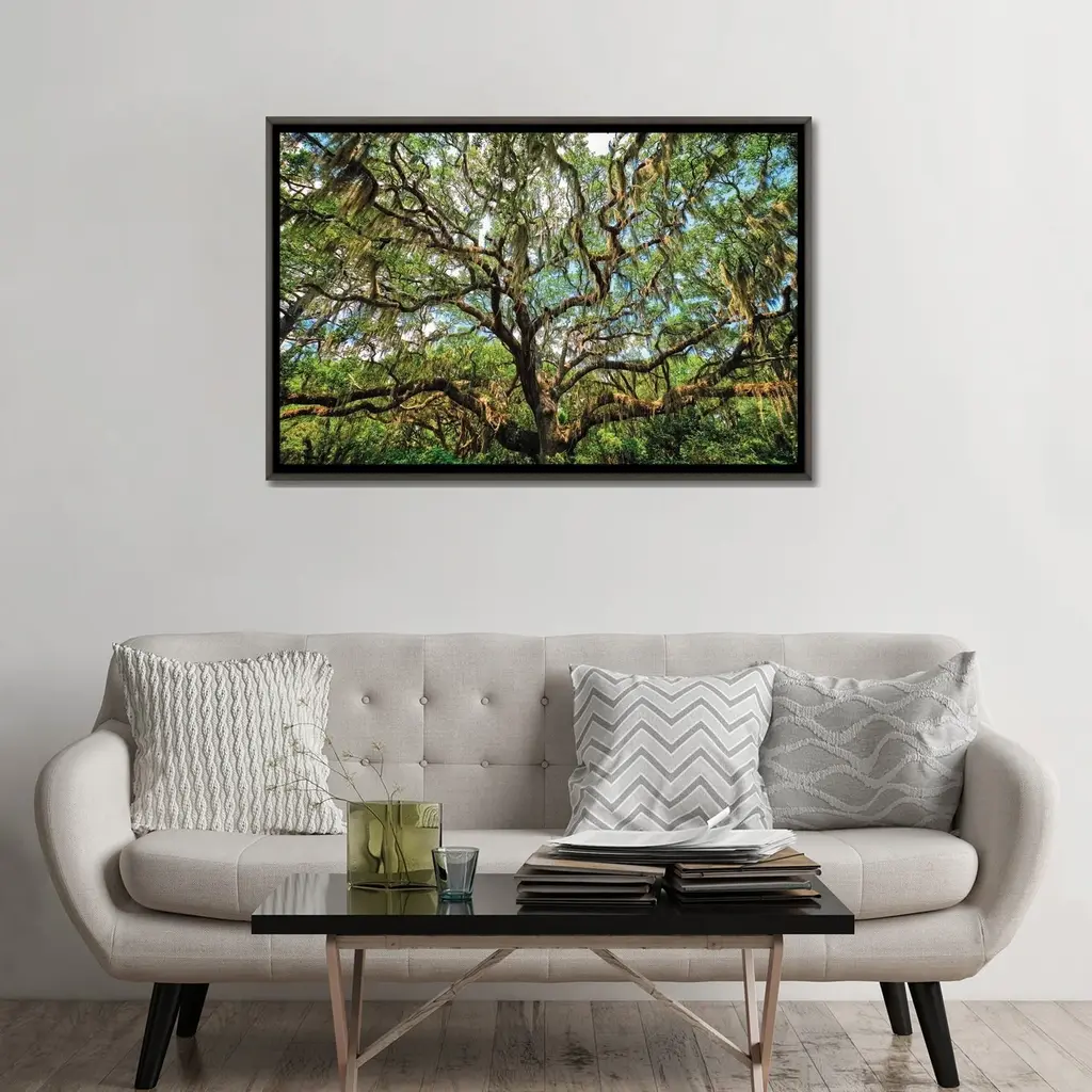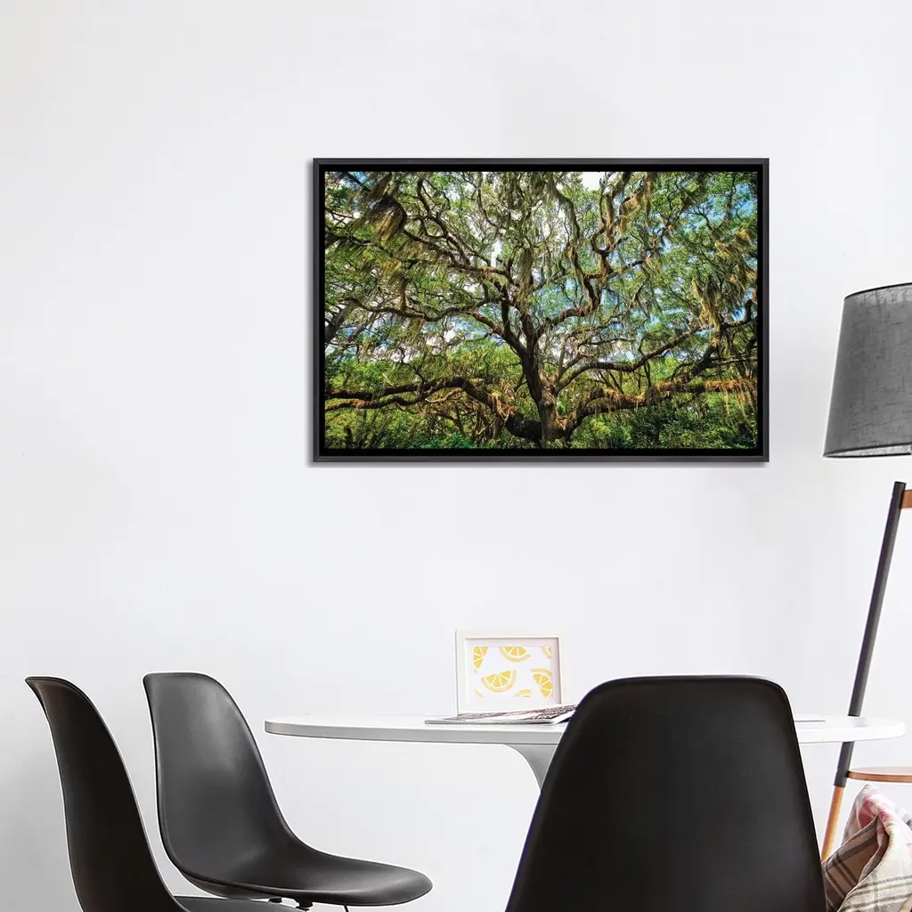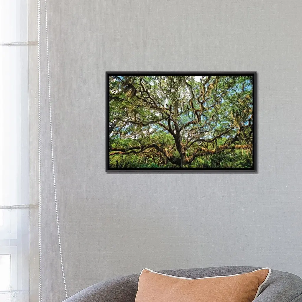 Icanvas "Live Oak Tree Canopy With Spanish Moss, Charleston, South Carolina" By George Oze Framed - Ebony - 32x48