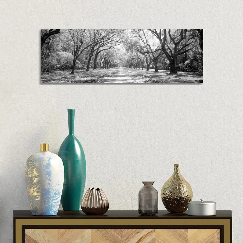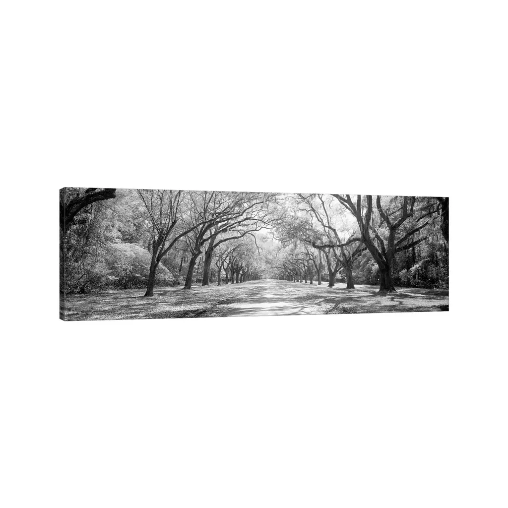 Icanvas "Live Oaks And Spanish Moss Wormsloe State Historic Site Savannah, Georgia (B&w) Ii" By Panoramic Images Canvas Print - 12x36x1.5