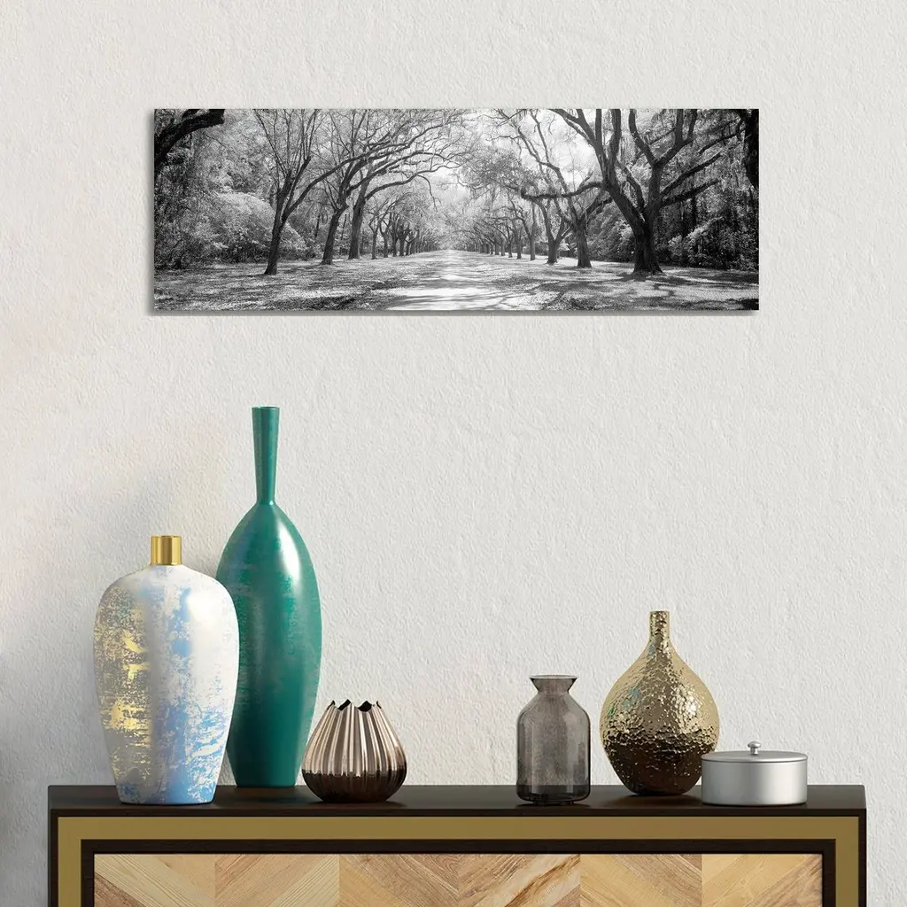 Icanvas "Live Oaks And Spanish Moss Wormsloe State Historic Site Savannah, Georgia (B&w) Ii" By Panoramic Images Canvas Print - 16x48x1.5