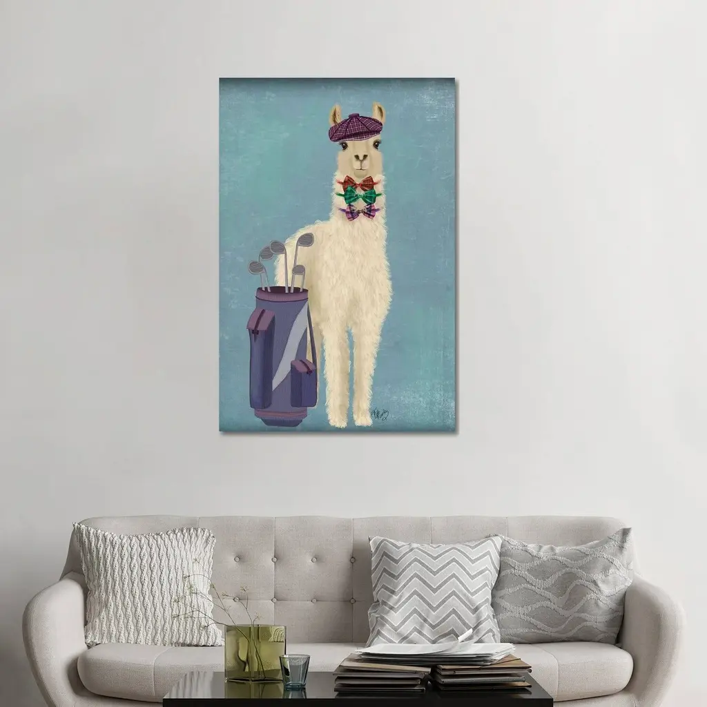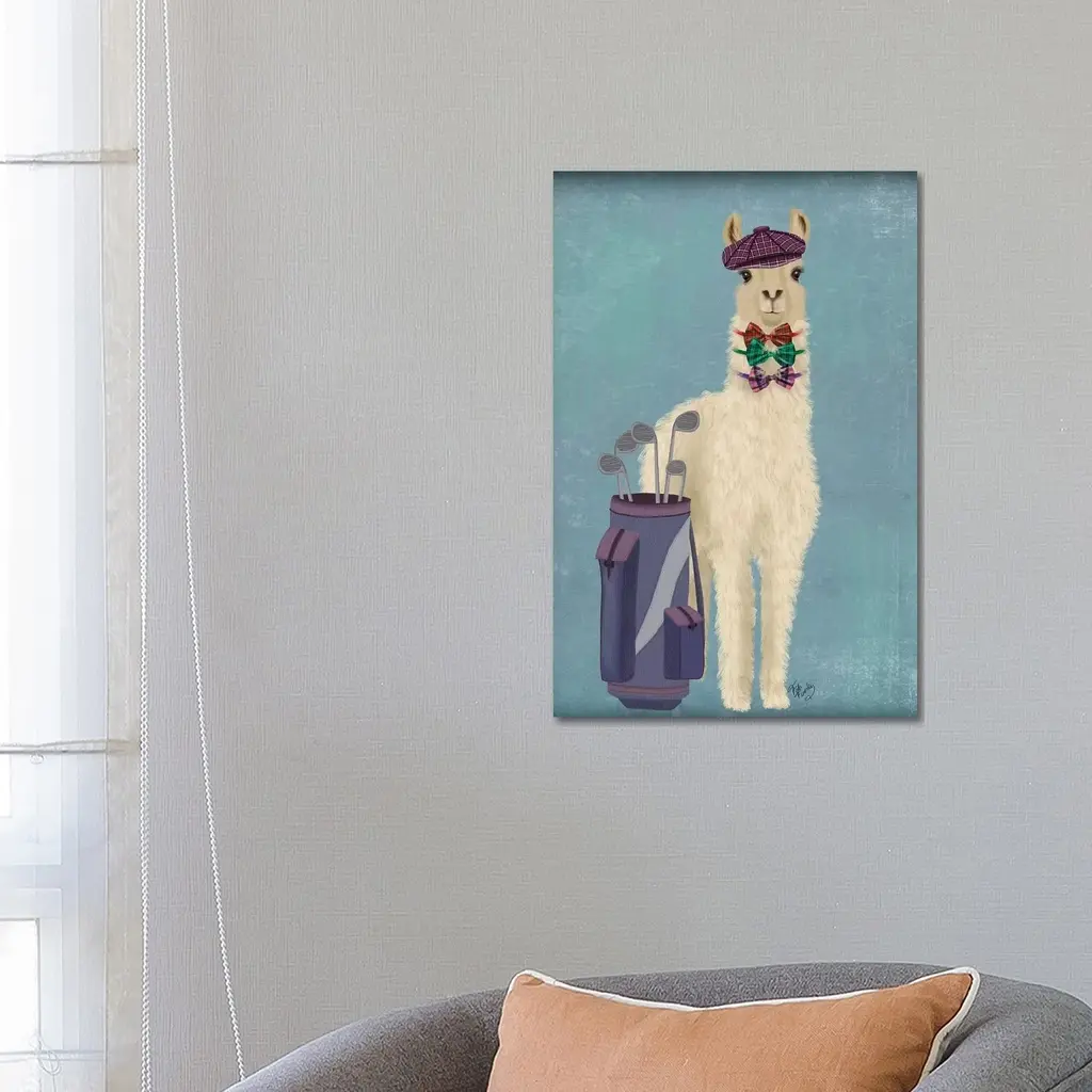 Icanvas "Llama Golfing" By Fab Funky Canvas Print - 40x26x1.5