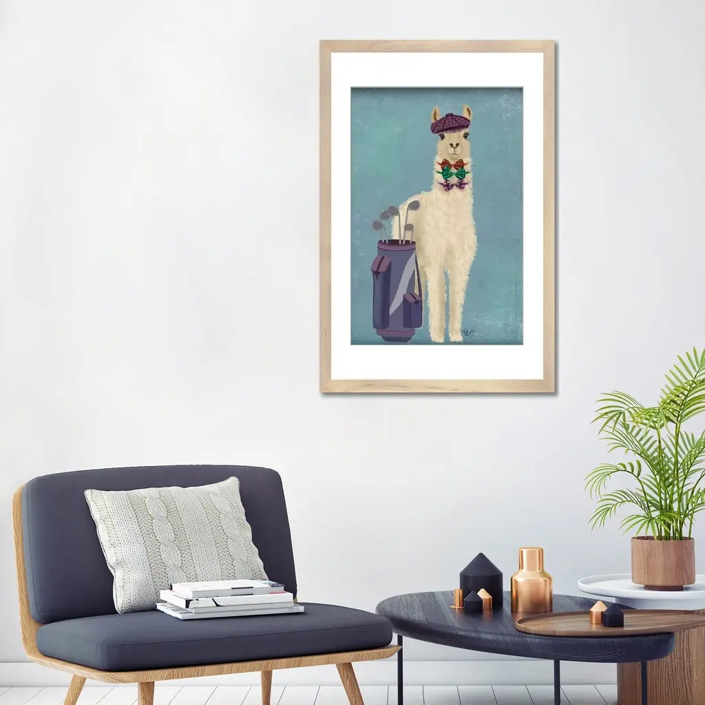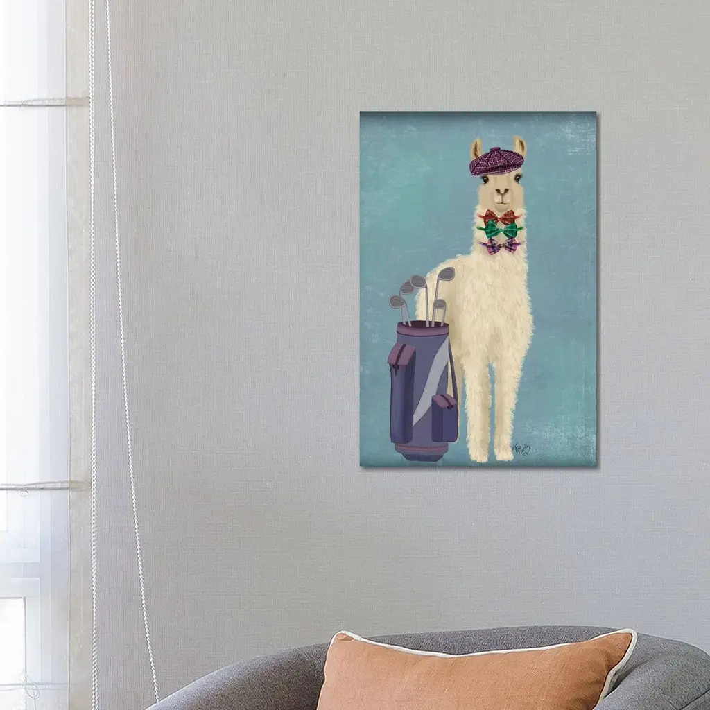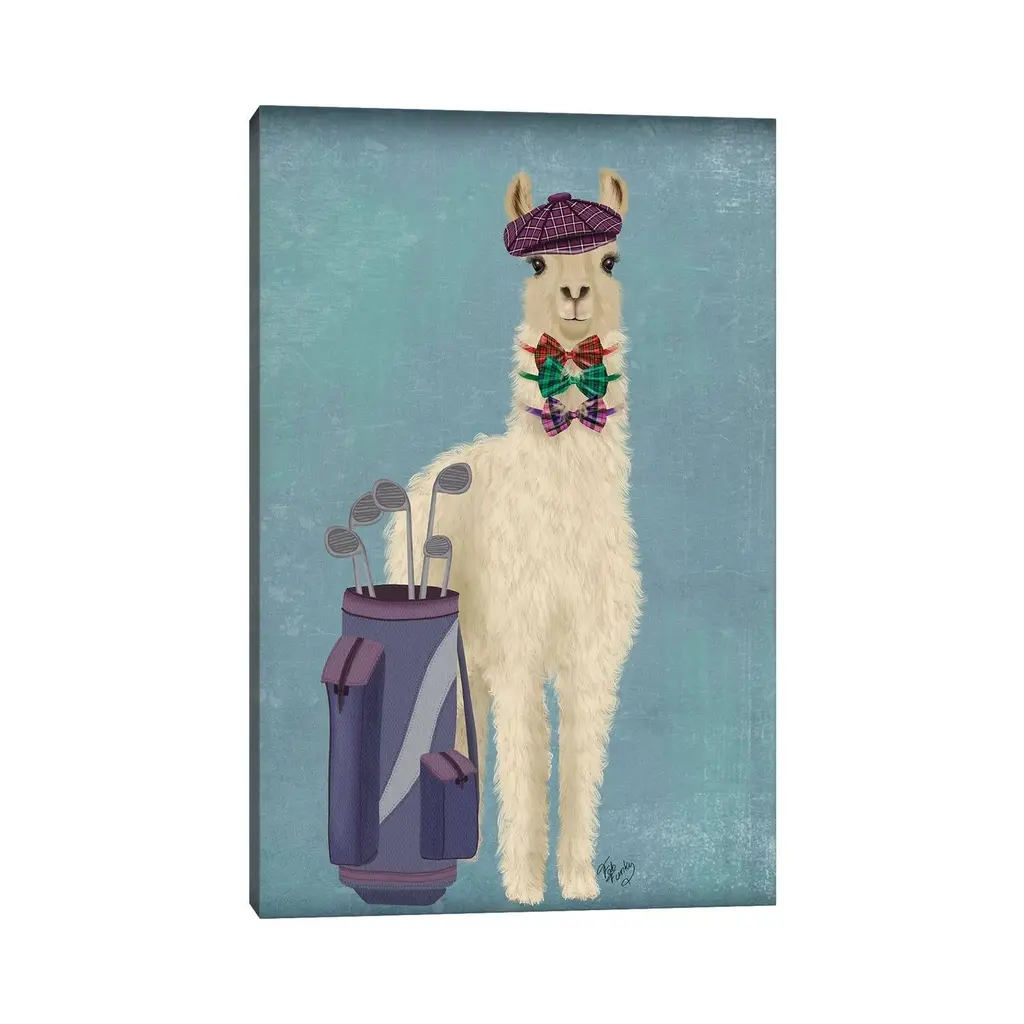 Icanvas "Llama Golfing" By Fab Funky Canvas Print - 48x32x1.5