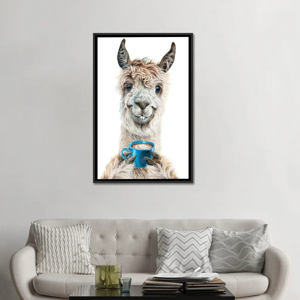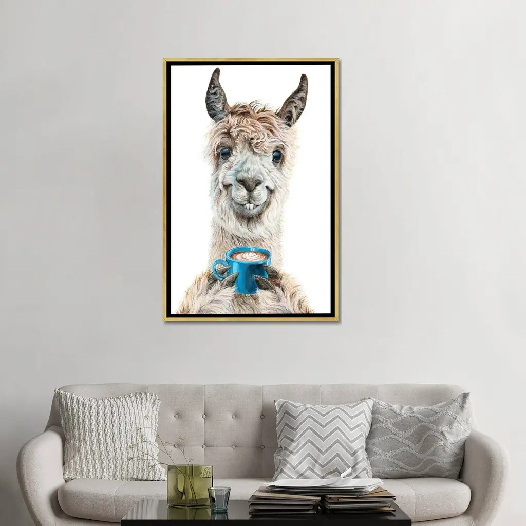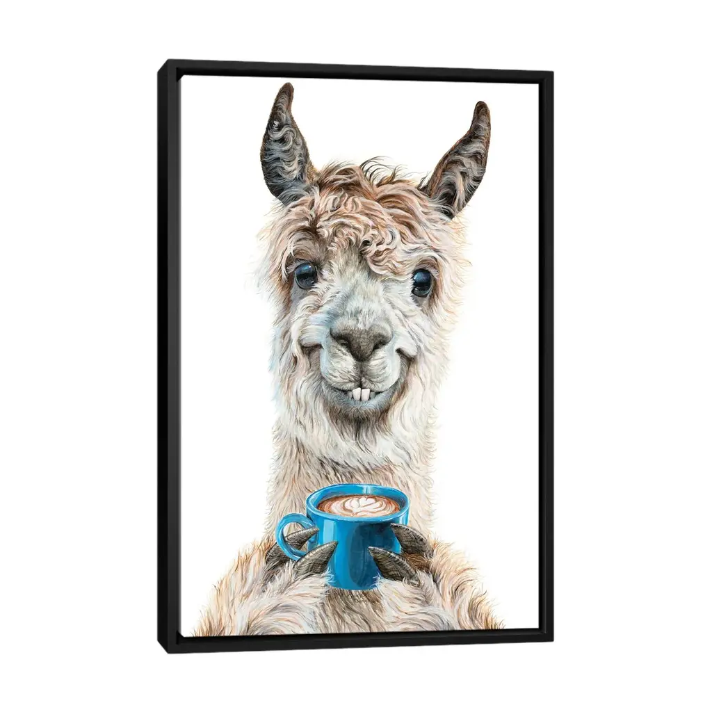 Icanvas "Llama Latte" By Holly Simental Framed Canvas Print - Black - 48x32