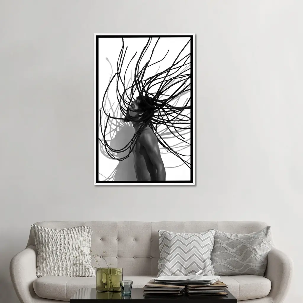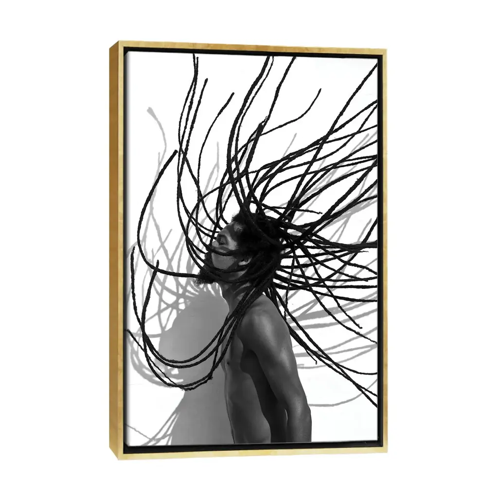 Icanvas "Locs" By Gregory Prescott Framed Canvas Print - Black - 26x18