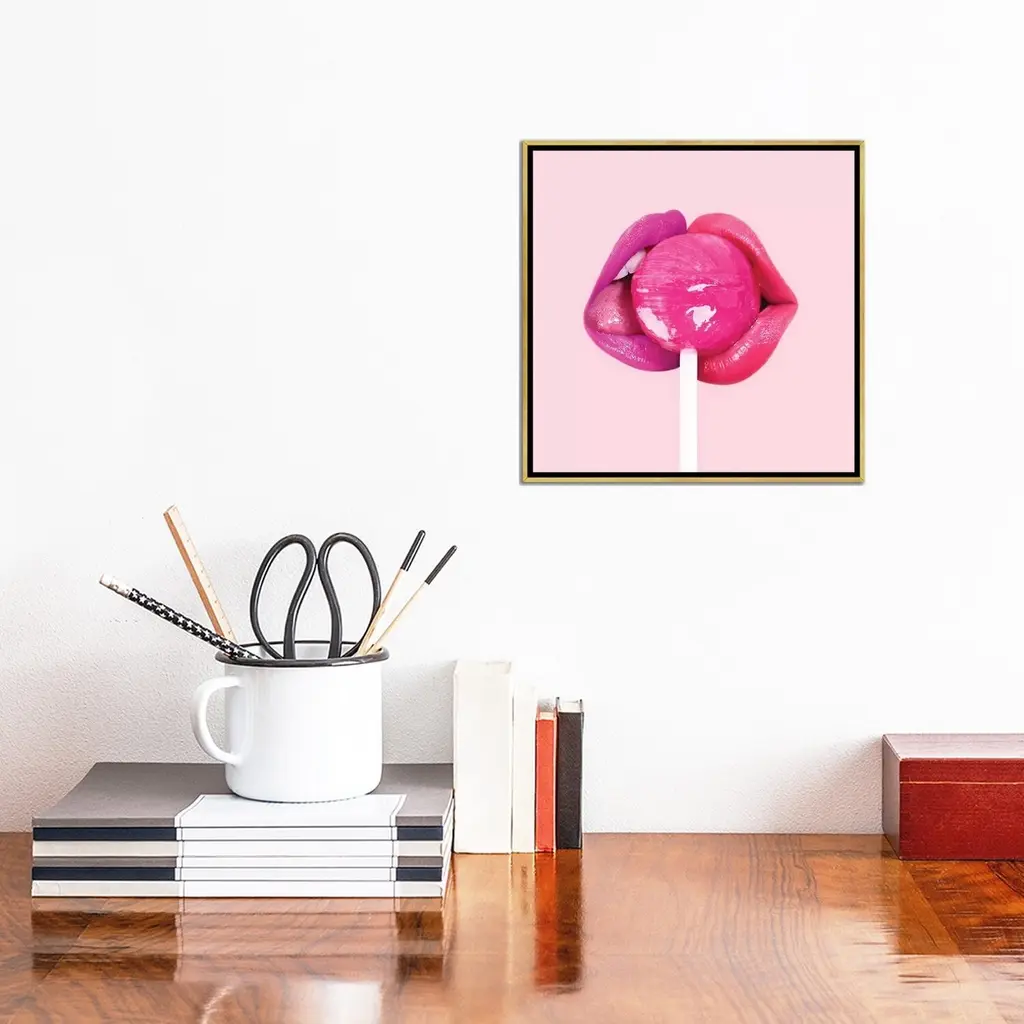 Icanvas "Lollipop Kiss" By Paul Fuentes Framed Canvas Print - 12x12 - Gold