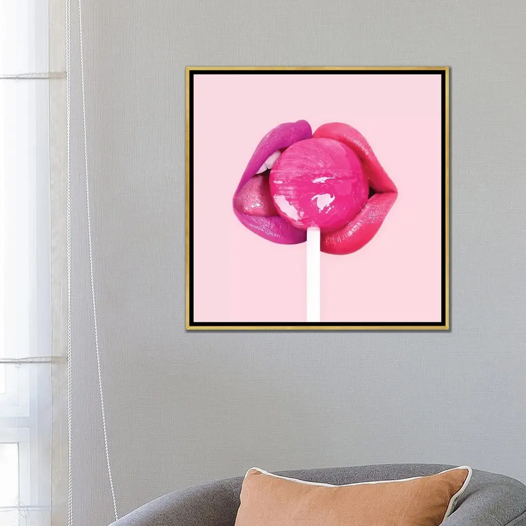 Icanvas "Lollipop Kiss" By Paul Fuentes Framed Canvas Print - 26x26 - Gold