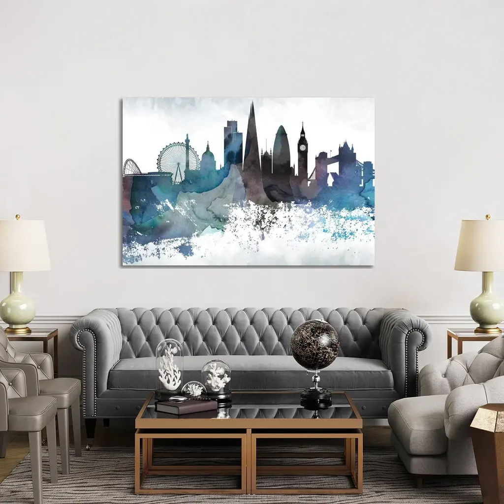 Icanvas "London Bluish Skylines" By Walldecoraddict Canvas Print - 8X12x0.75
