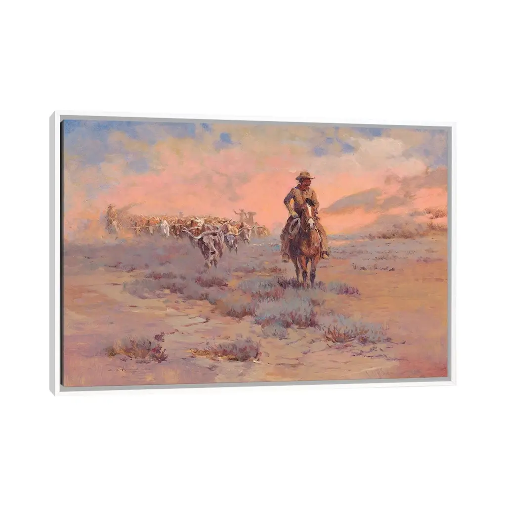 Icanvas "Long Horns" By Ernest Chiriacka Framed Canvas Print - White - 26x40