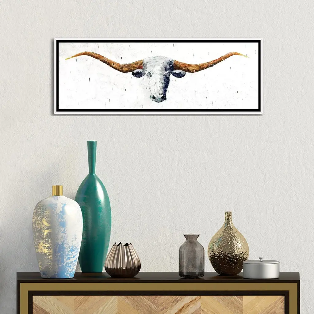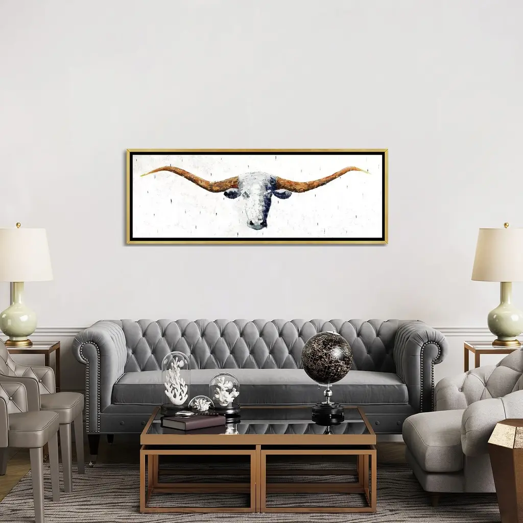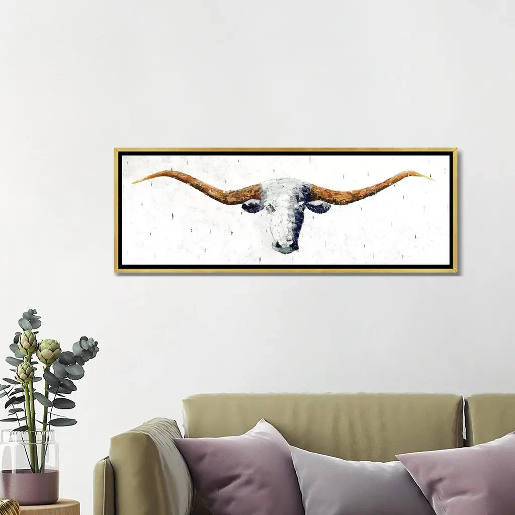 Icanvas "Longhorn" By Marvin Pelkey Framed Canvas Print - Gold - 20x60