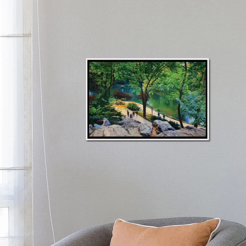 Icanvas "Lovers In Central Park" By Nick Savides Framed Canvas Print - White - 32x48