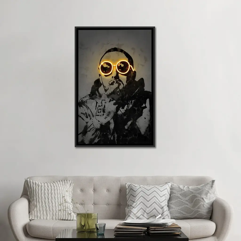 Icanvas "Mac Miller" By Octavian Mielu Framed Canvas Print - White - 48x32