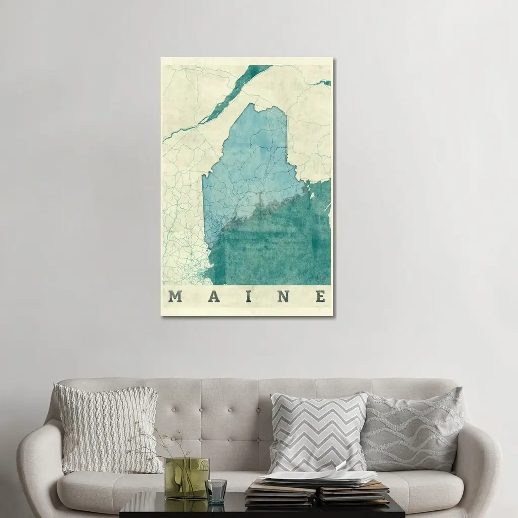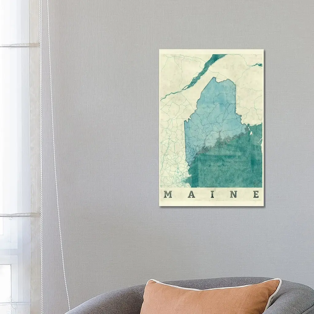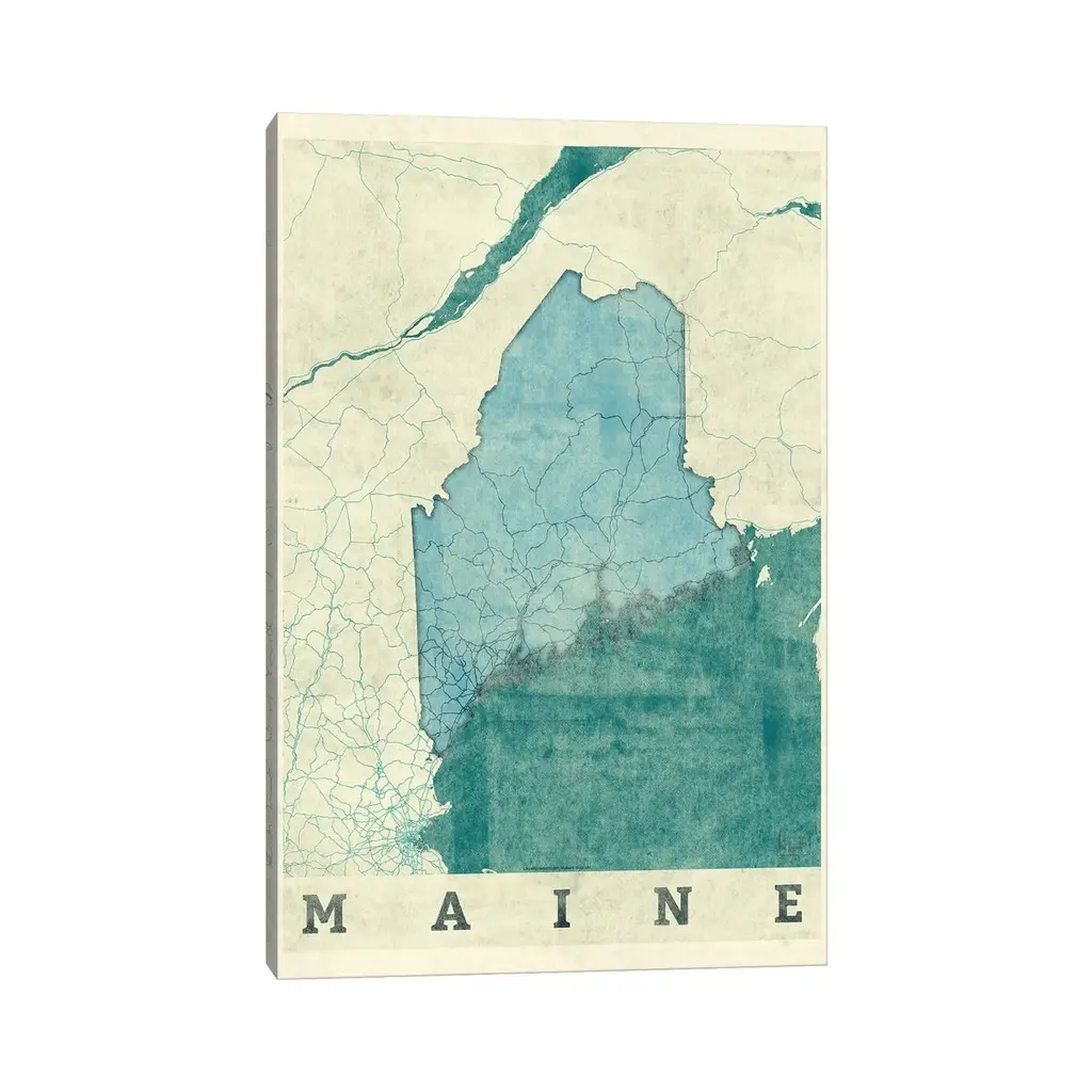 Icanvas "Maine Map" By Hubert Roguski Canvas Print - 48x32x1.5