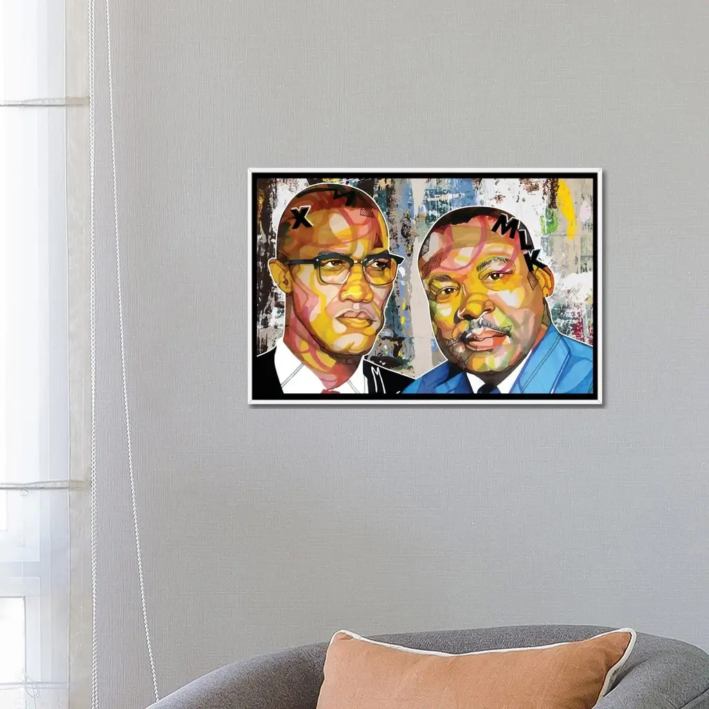 Icanvas "Malcolm X Martin" By Domonique Brown Framed Canvas Print - Black - 32x48