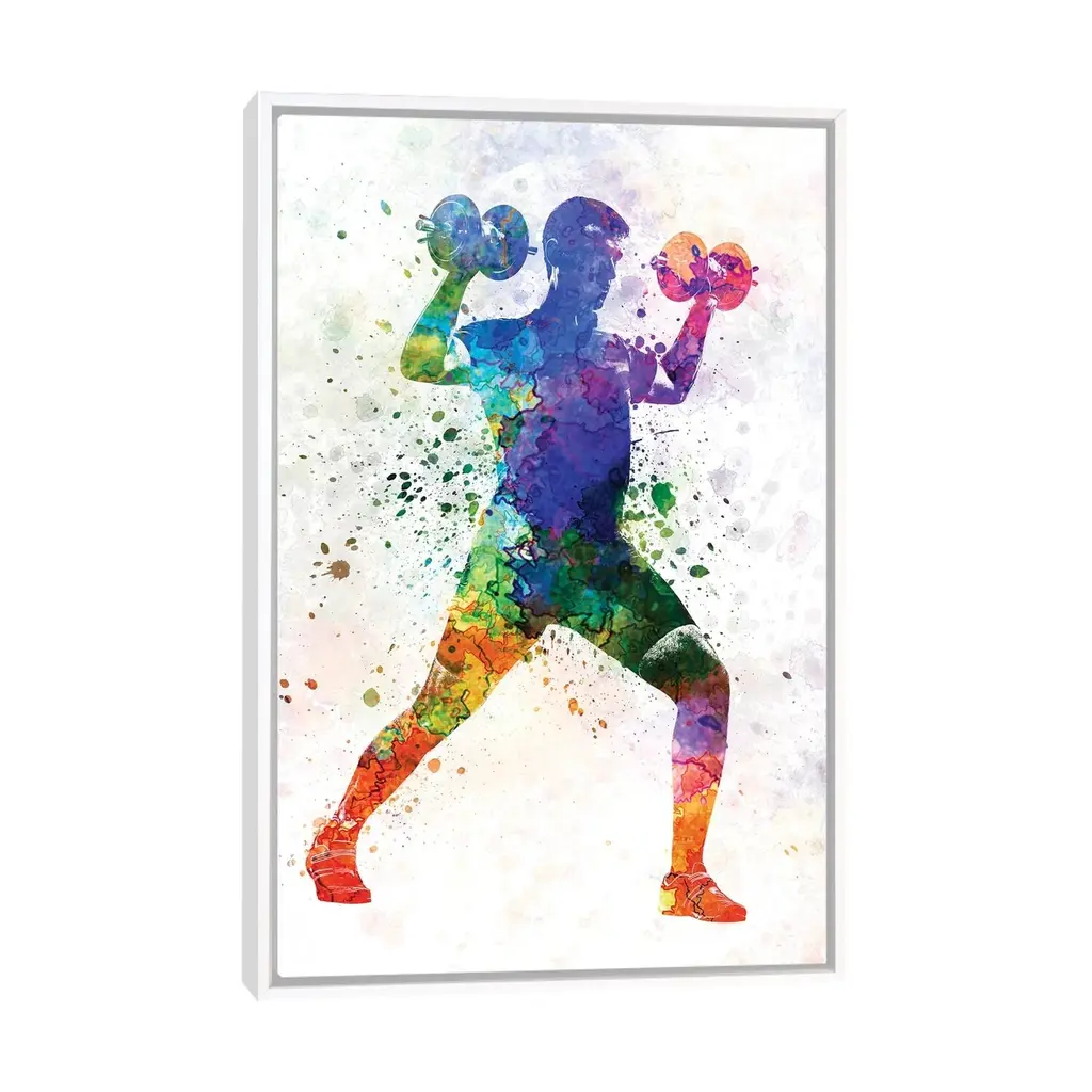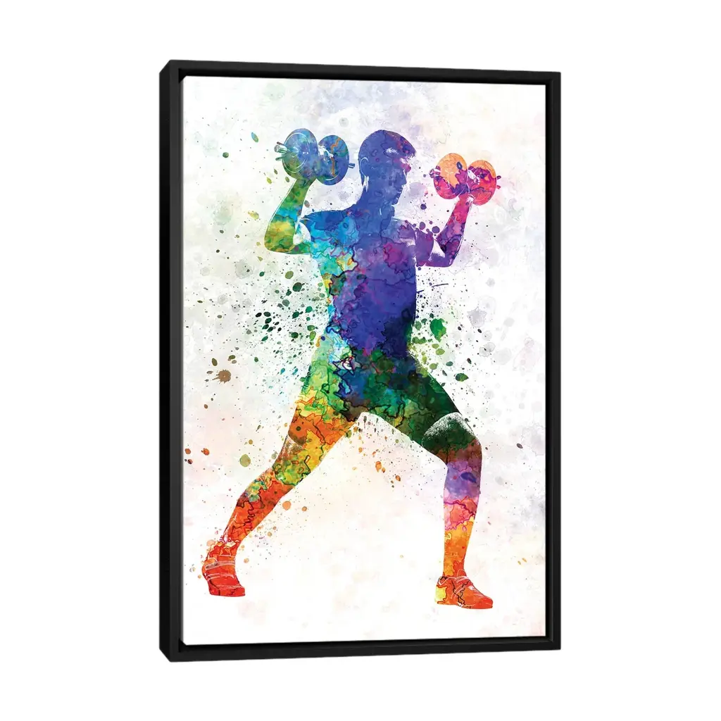 Icanvas "Man Exercising Weight Training" By Paul Rommer Framed Canvas Print - Gold - 26x18