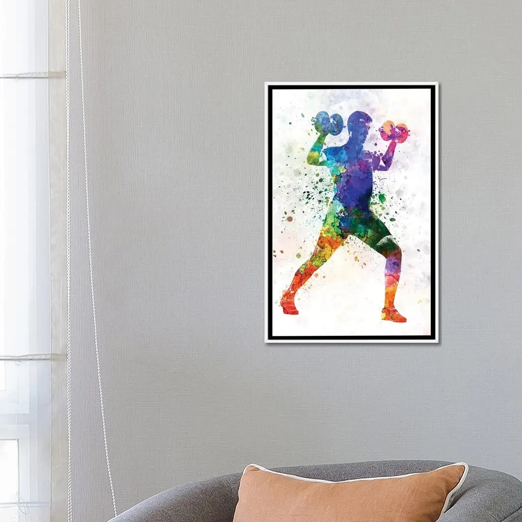 Icanvas "Man Exercising Weight Training" By Paul Rommer Framed Canvas Print - White - 40x26