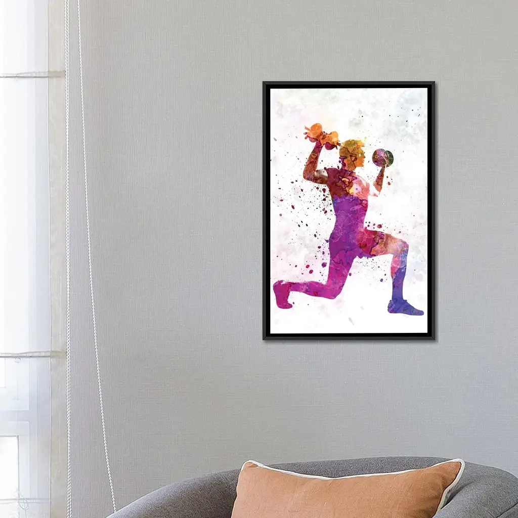 Icanvas "Man Exercising Weight Training Workout Fitness" By Paul Rommer Framed Canvas Print - Black - 40x26