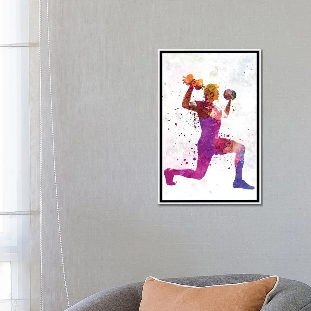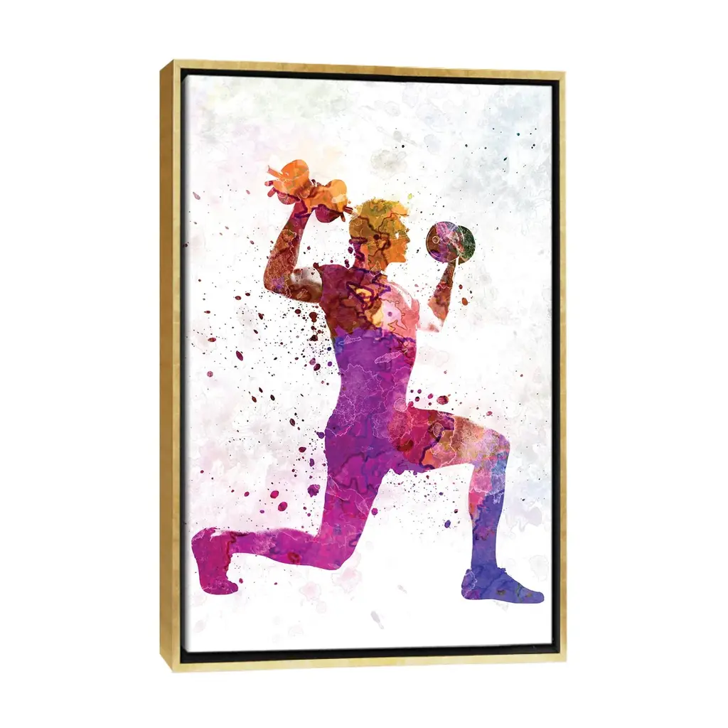 Icanvas "Man Exercising Weight Training Workout Fitness" By Paul Rommer Framed Canvas Print - Gold - 40x26