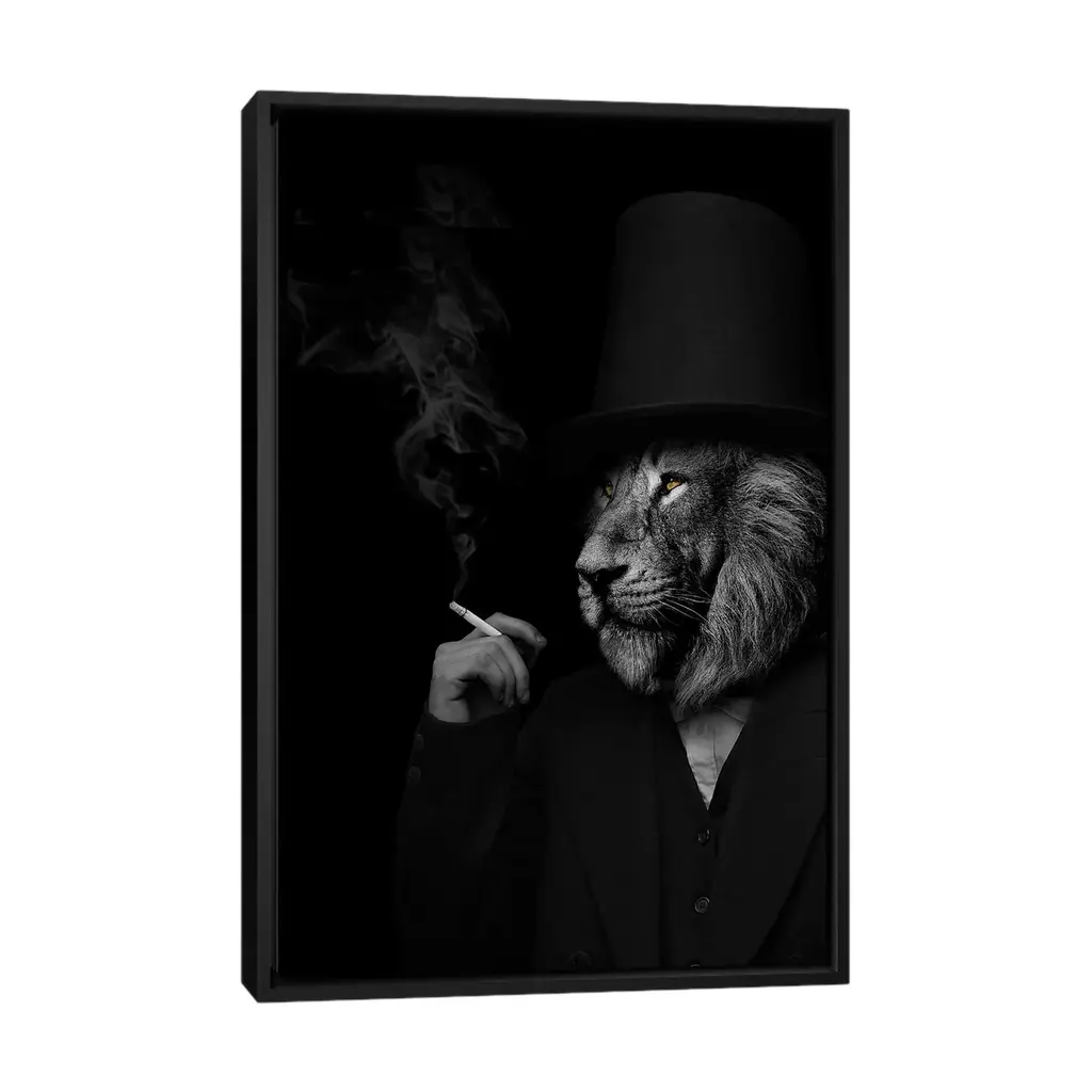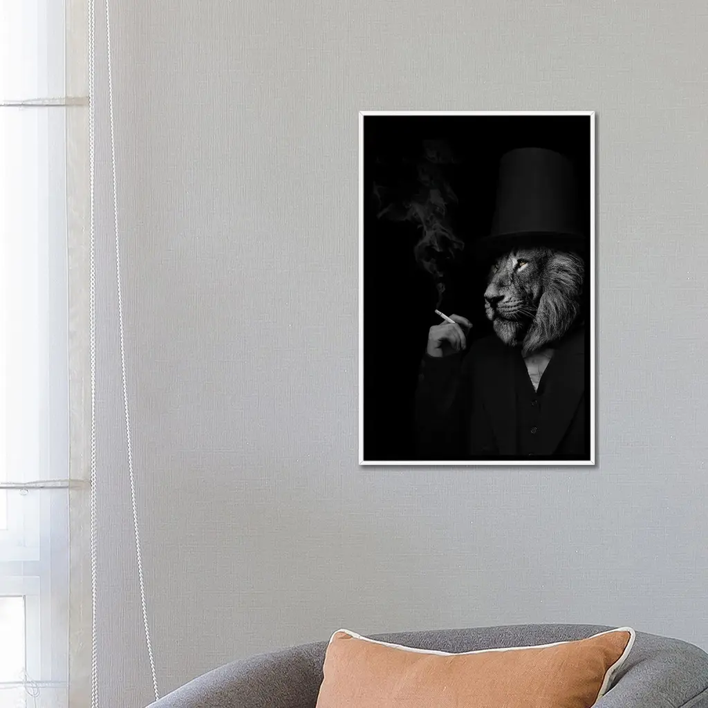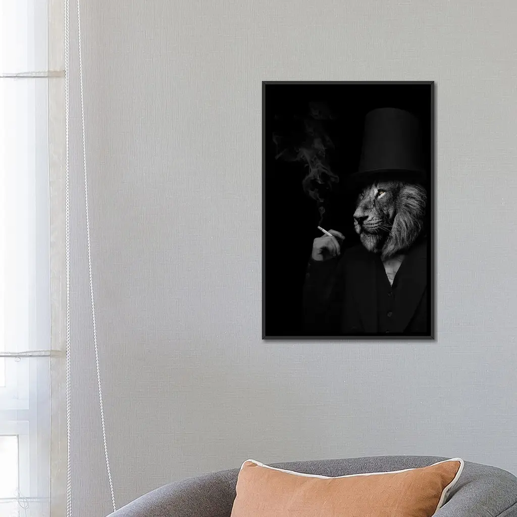 Icanvas "Man In The Form Of A Lion Person Black And White Smoking" By Adrian Vieriu Framed - Black - 26x18