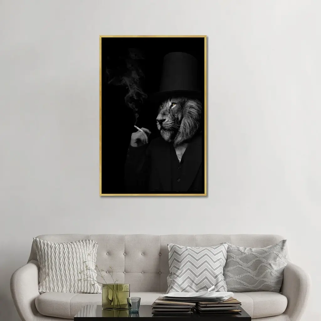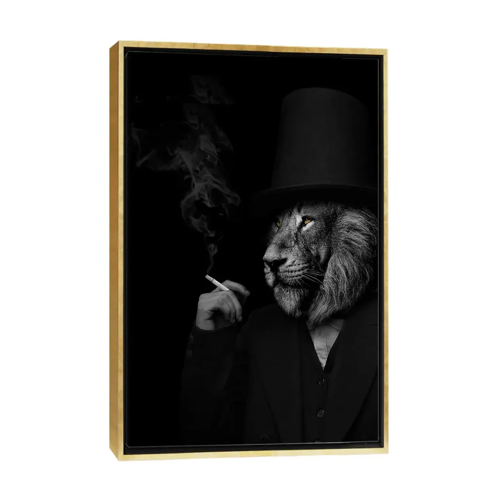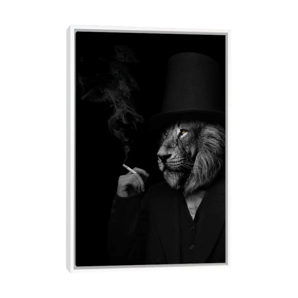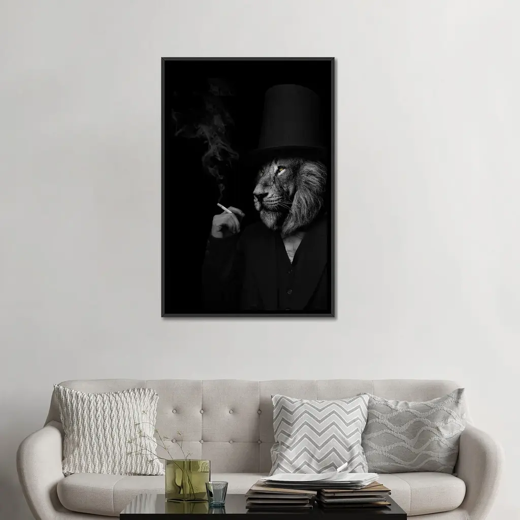 Icanvas "Man In The Form Of A Lion Person Black And White Smoking" By Adrian Vieriu Framed - Black - 26x18