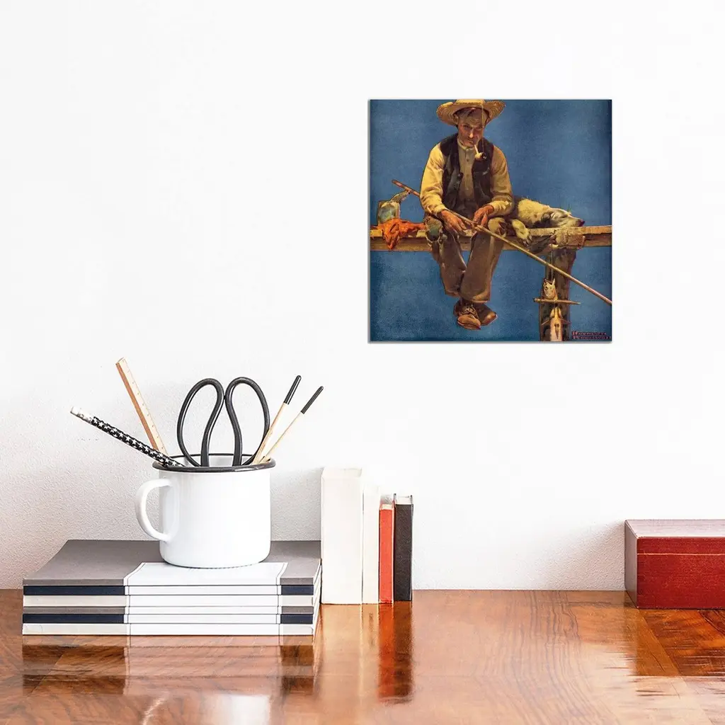 Icanvas "Man On Dock Fishing" By Norman Rockwell Canvas Print - 26x26x1.5