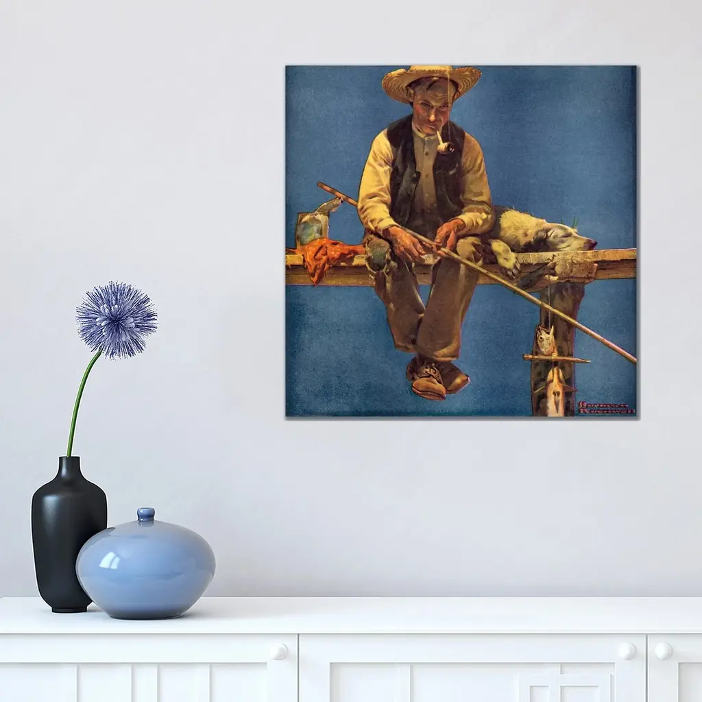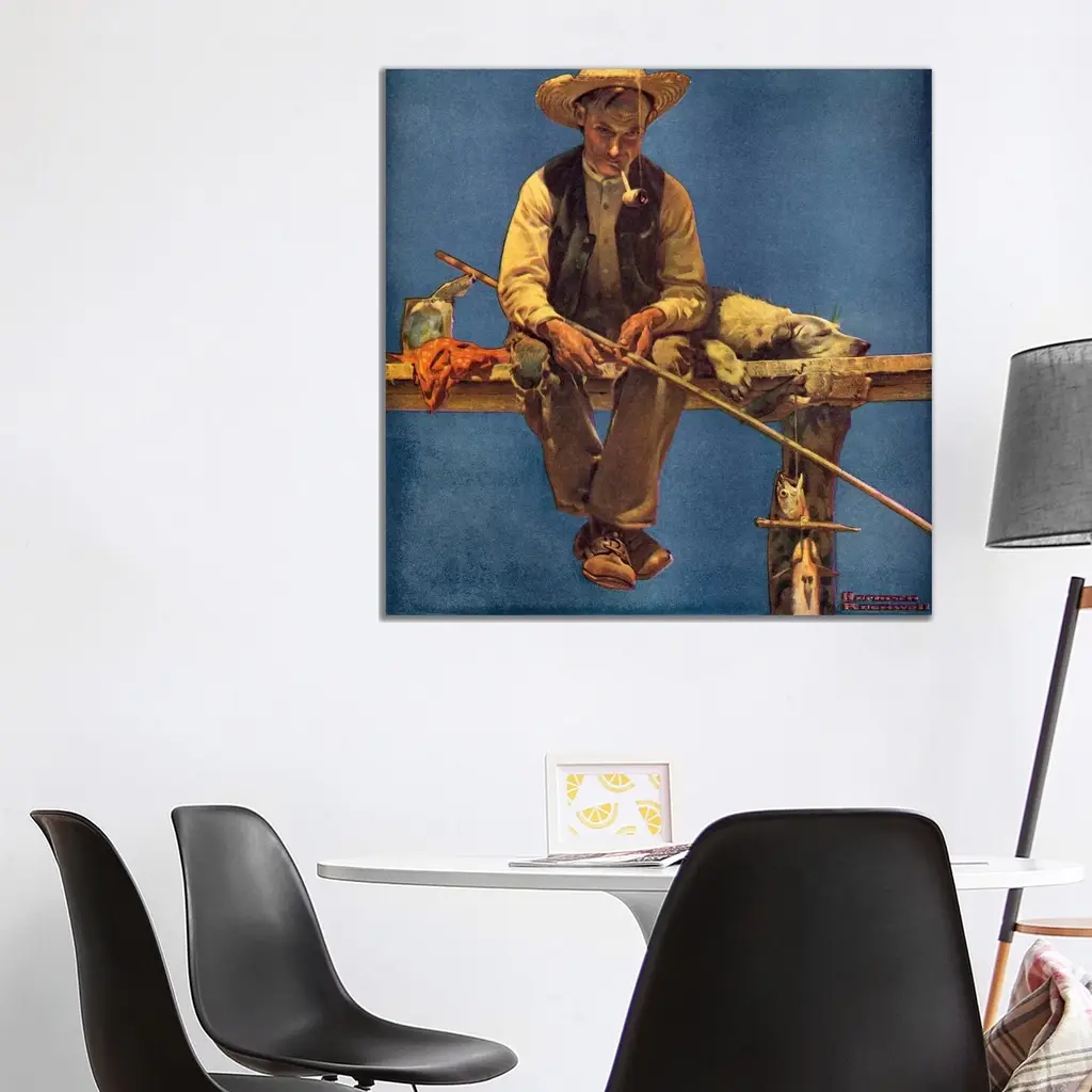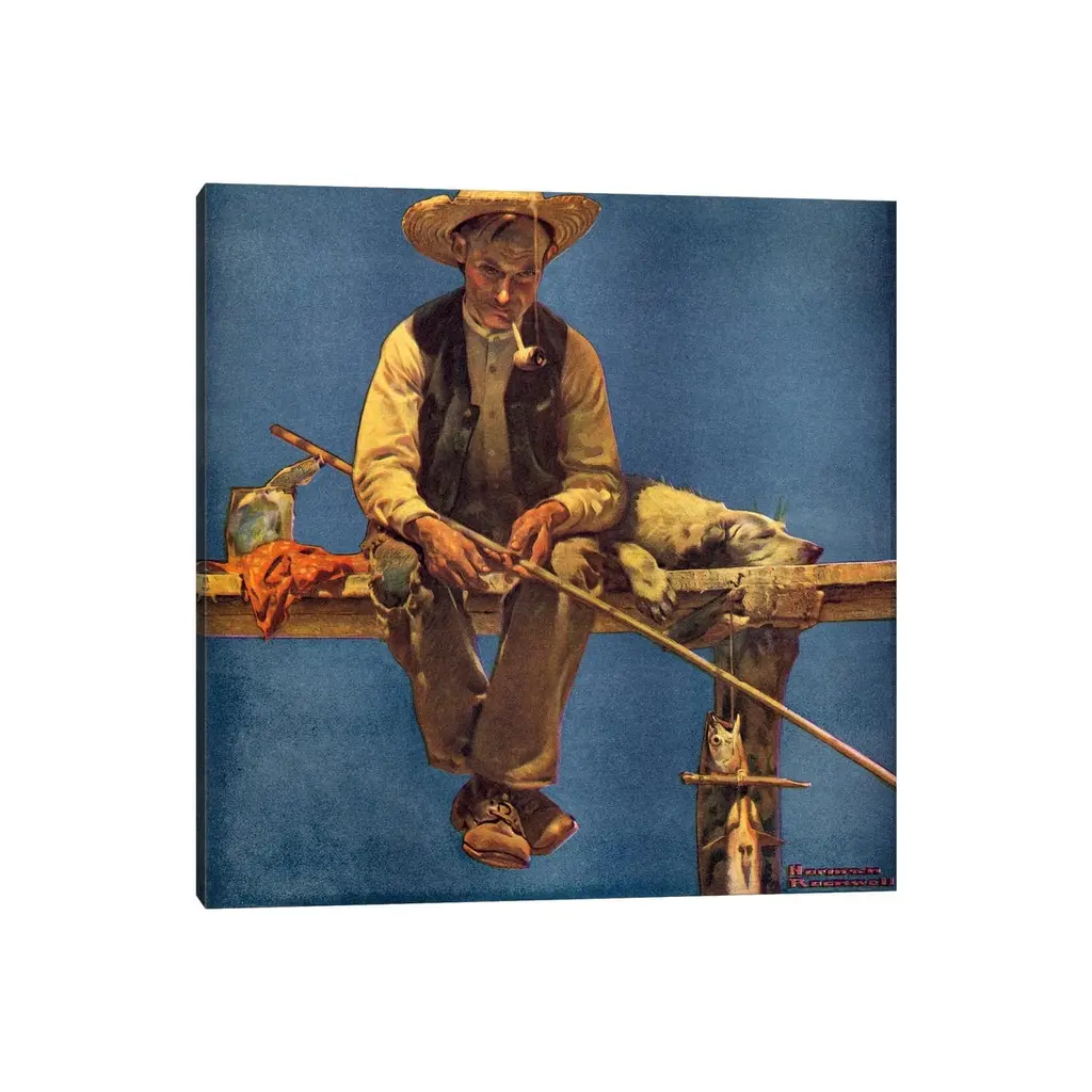 Icanvas "Man On Dock Fishing" By Norman Rockwell Canvas Print - 37x37x1.5