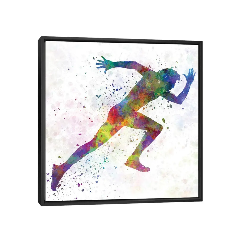 Icanvas "Man Running Sprinting Jogging I" By Paul Rommer Framed Canvas Print - Black - 12x12