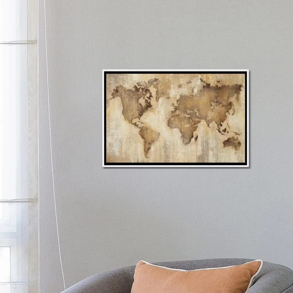 Icanvas "Map Of The World" By Liz Jardine Framed Canvas Print - Gold - 26x40