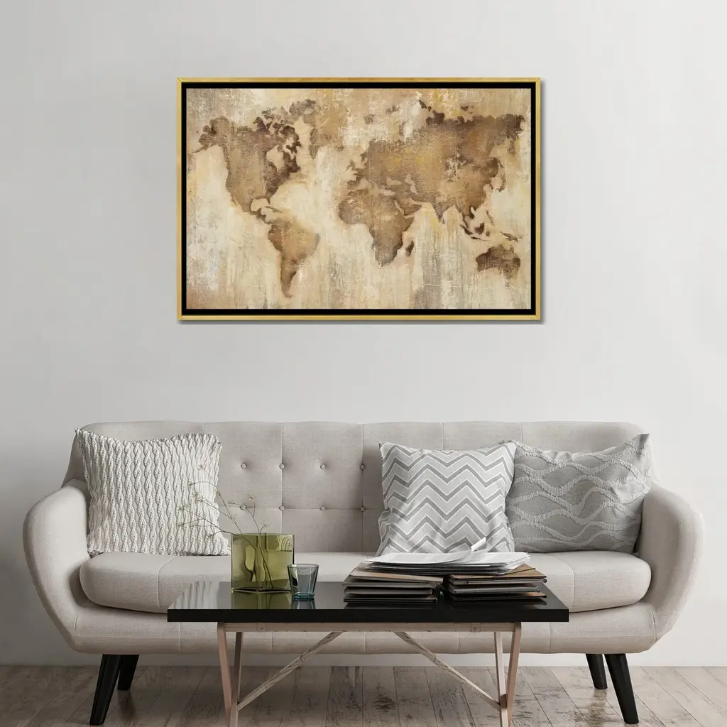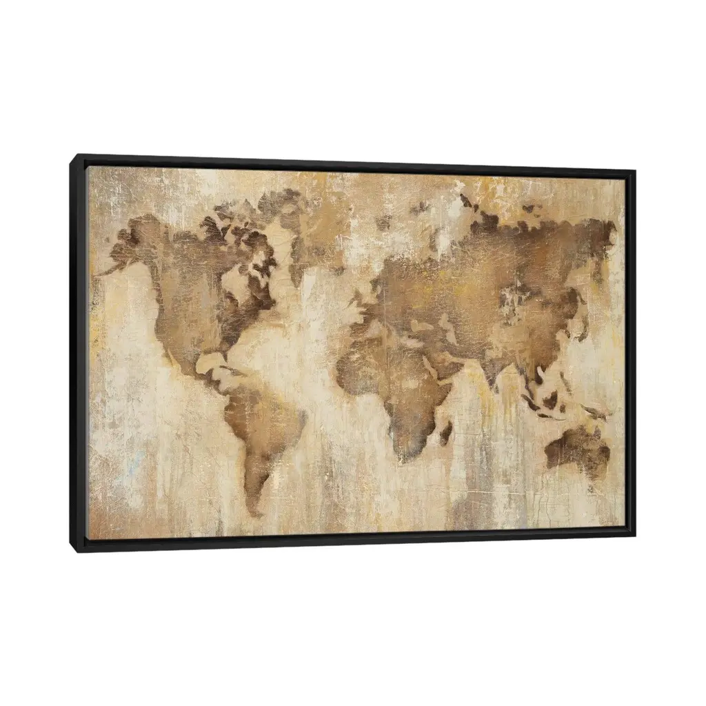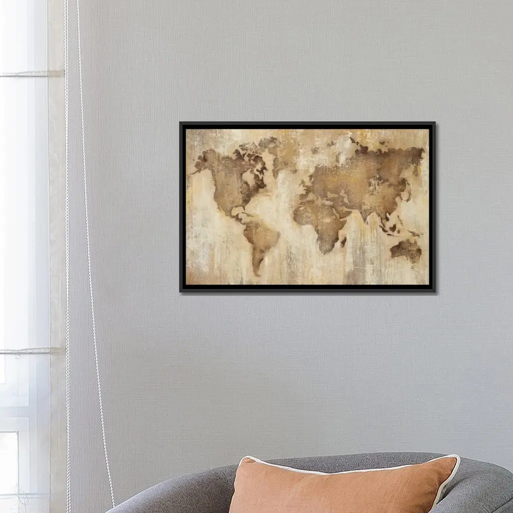 Icanvas "Map Of The World" By Liz Jardine Framed Canvas Print - White - 32x48