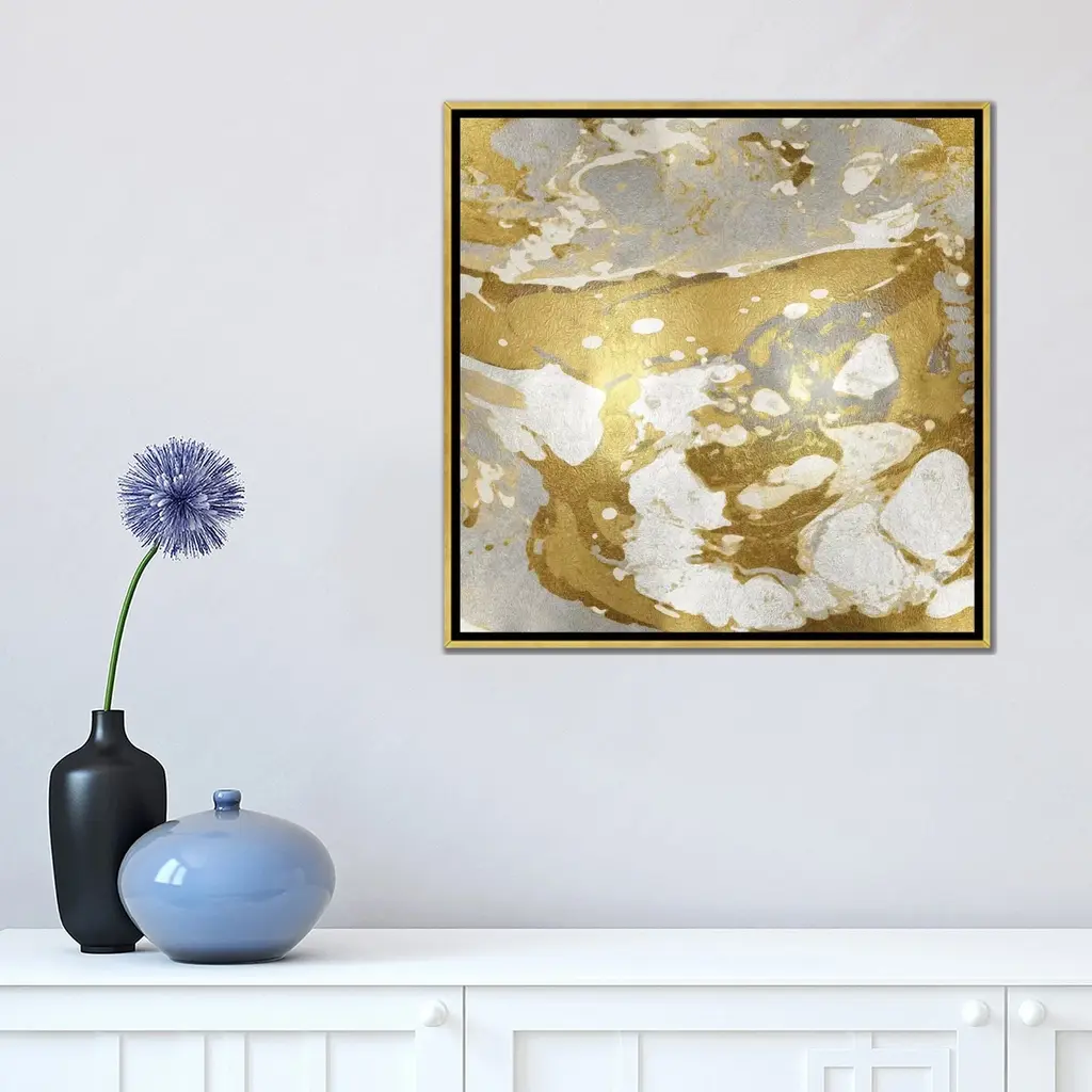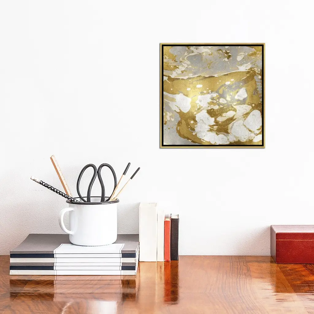 Icanvas "Marbleized In Gold And Silver" By Danielle Carson Framed Canvas Print - Black - 12x12