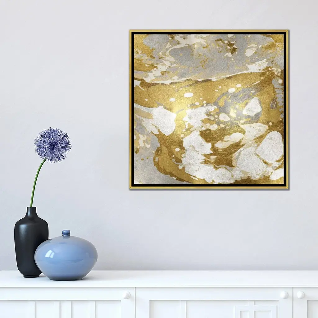 Icanvas "Marbleized In Gold And Silver" By Danielle Carson Framed Canvas Print - White - 18x18
