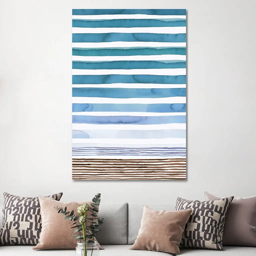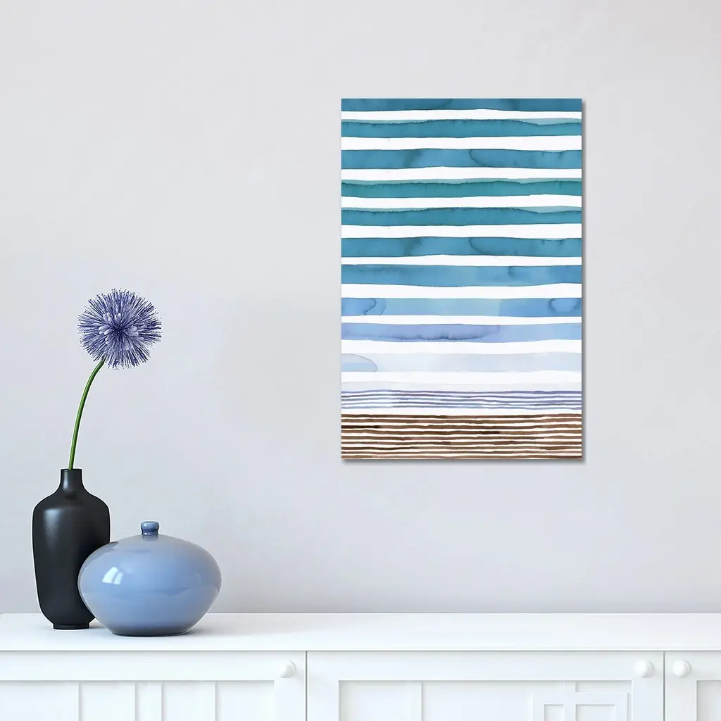 Icanvas "Marine Watercolor Stripes" By Ninola Design Canvas Print - 48x32x1.5