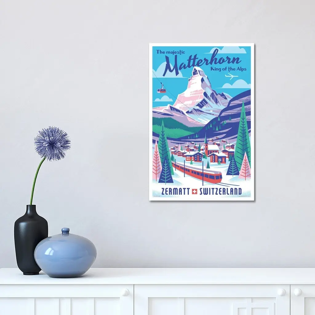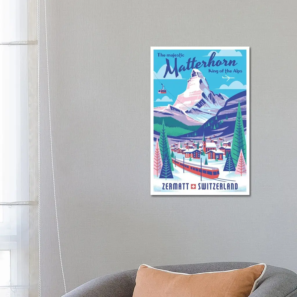 Icanvas "Matterhorn Switzerland Travel Poster" By Jim Zahniser Canvas Print - 18x12x1.5