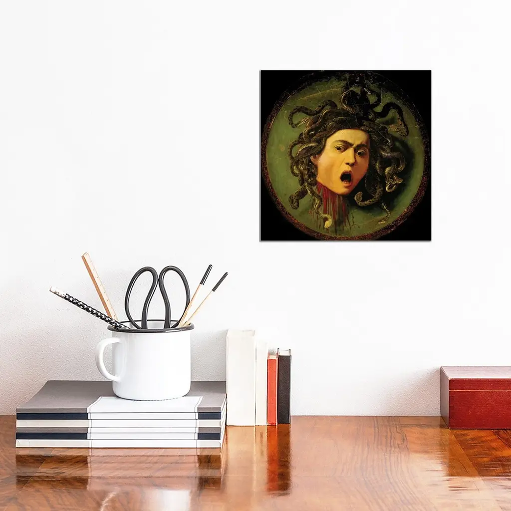 Icanvas "Medusa, Painted On A Leather Jousting Shield, C.1596-98" By Michelangelo Merisi Da Caravaggio Canvas Print - 12x12x1.5