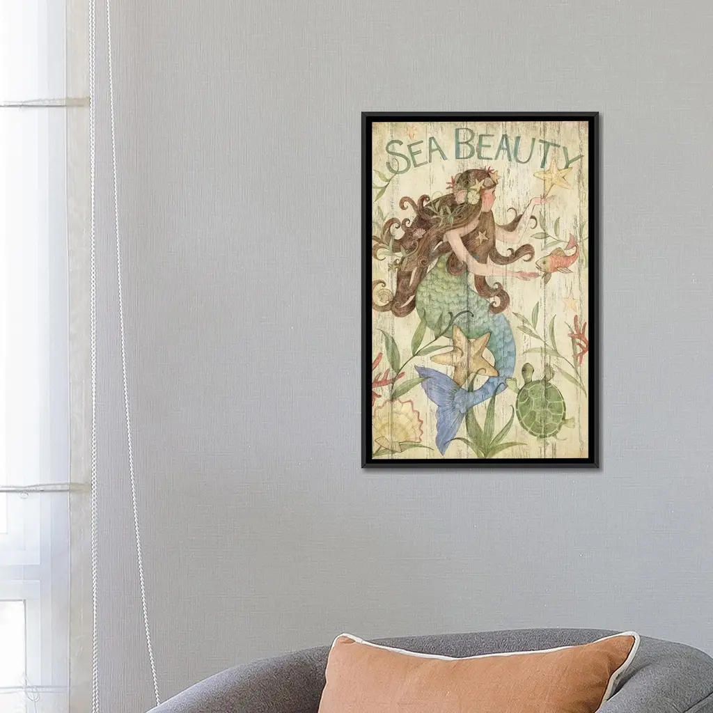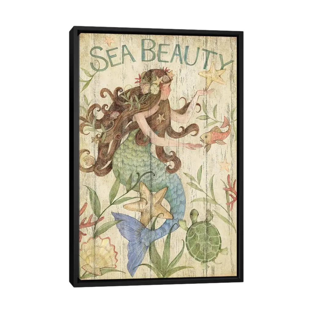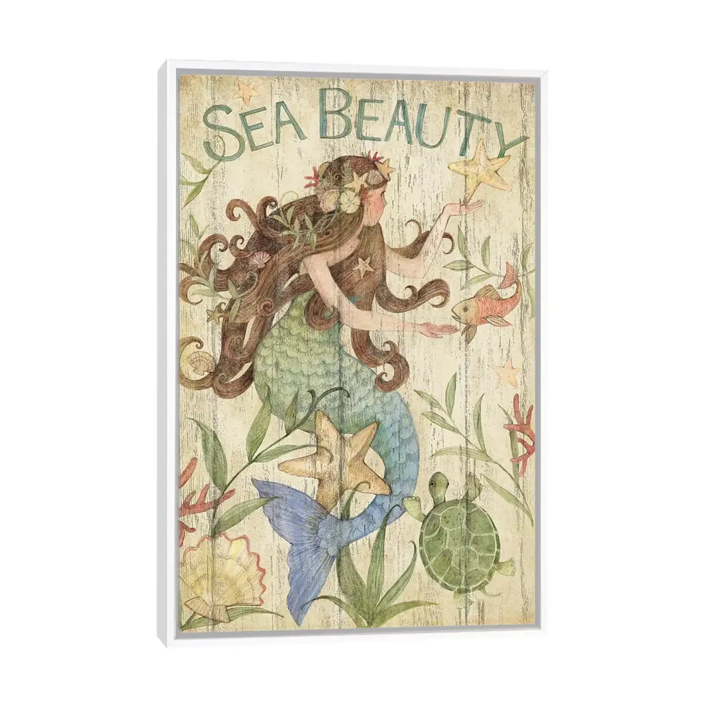 Icanvas "Mermaid Beauty" By Susan Winget Framed Canvas Print - Gold - 26x18