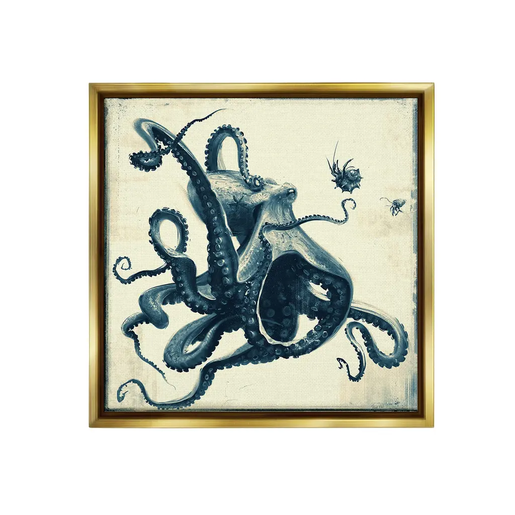 Icanvas "Metallic Octopus Iv" By Spacefrog Designs Framed - 12x12 - Charcoal